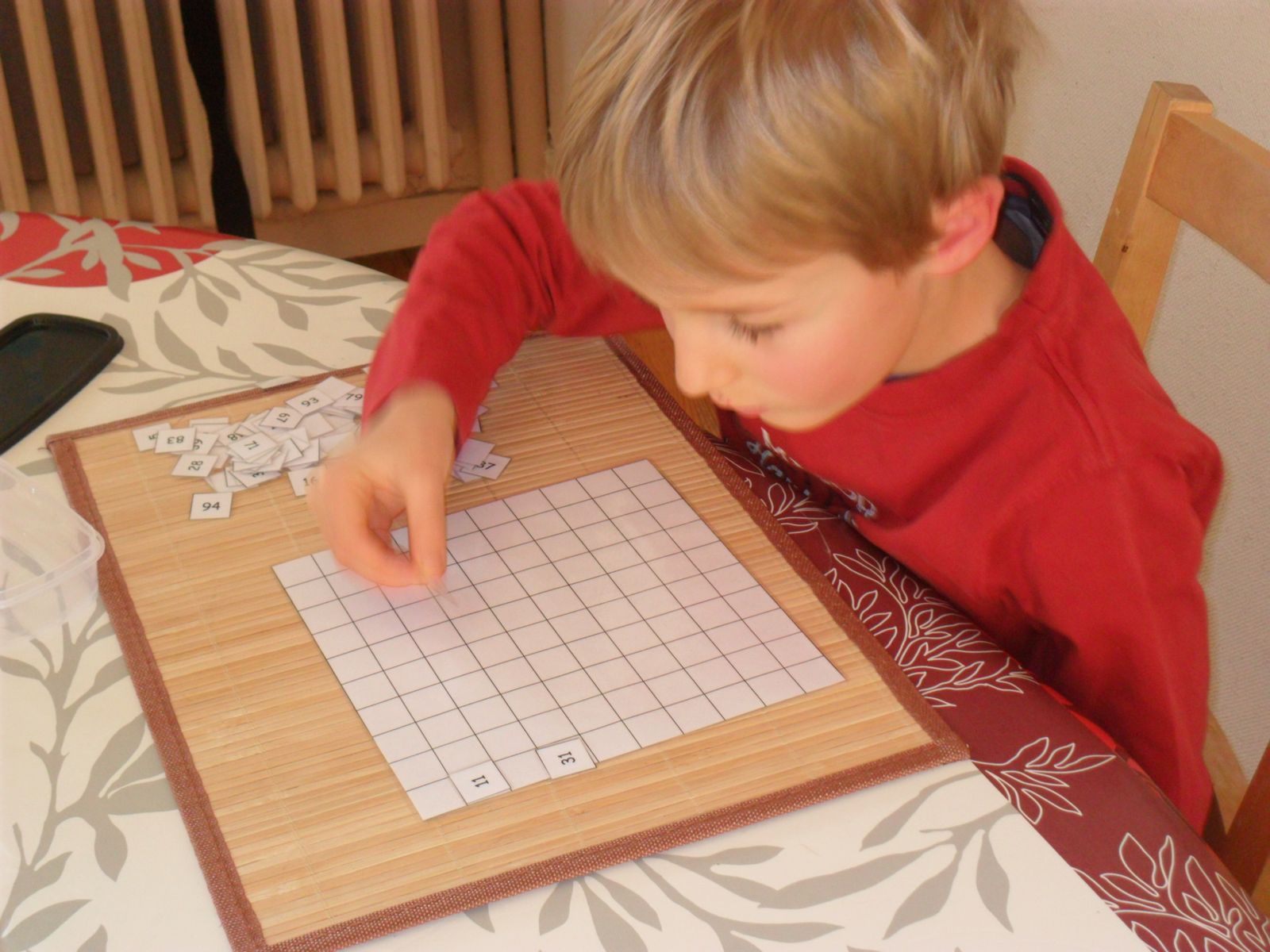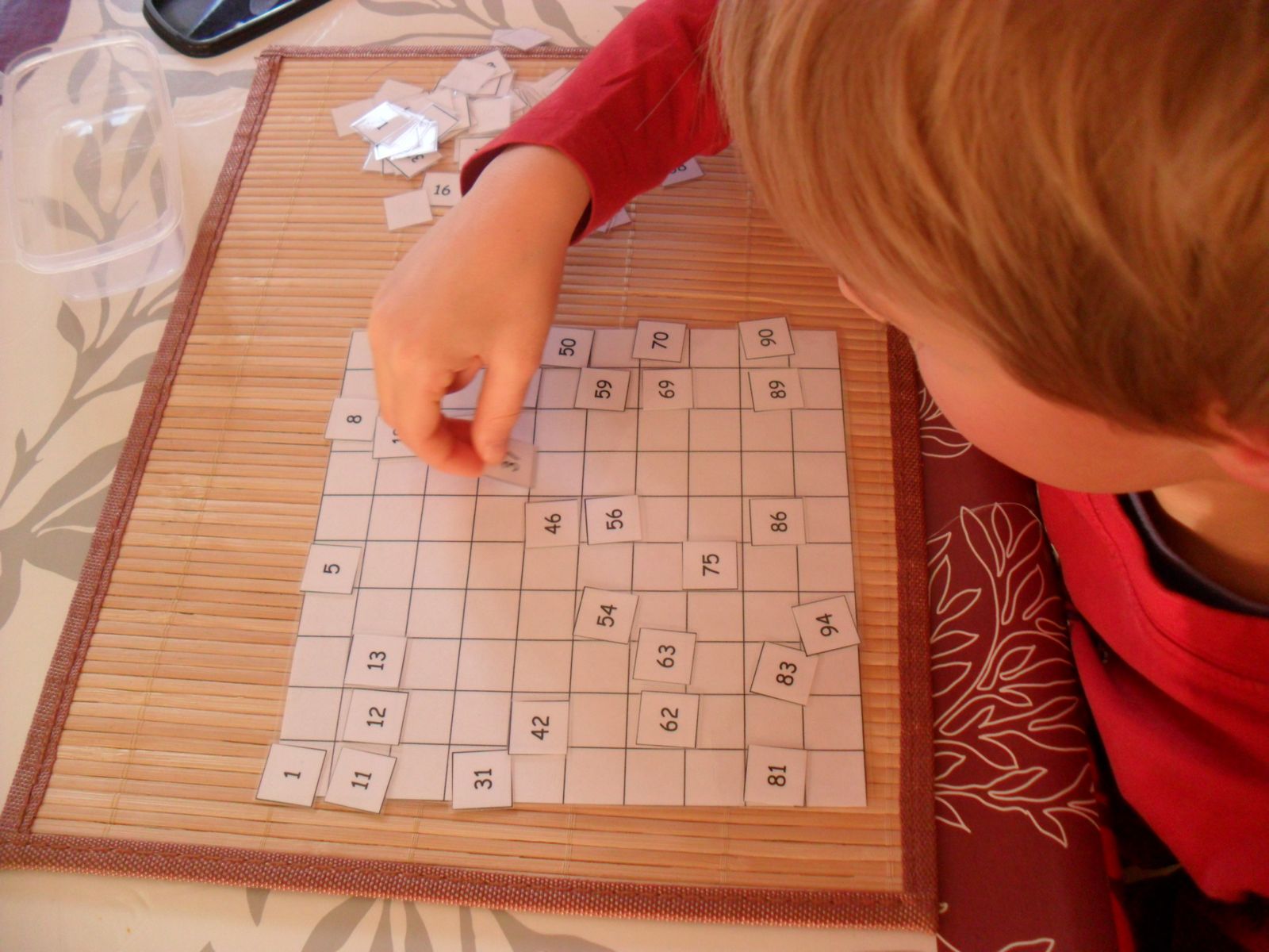 Chez Montessori, pour garder la motivation des enfants intacte, il convient de varier les supports de travail. Ici, utiliser une autre cuillère-passoire.