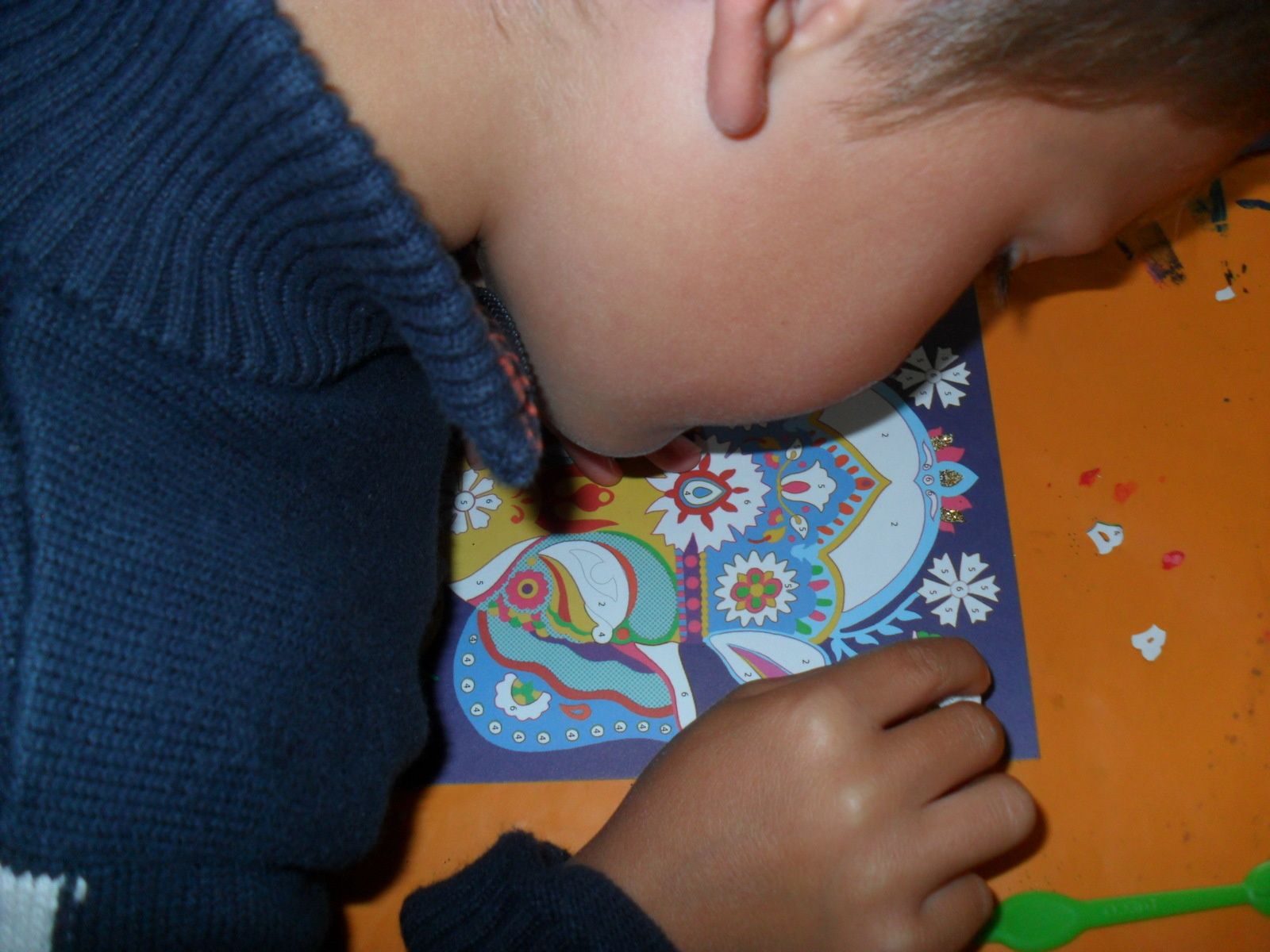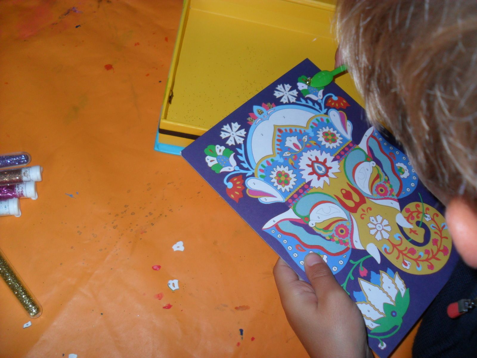 Après avoir présenté le matériel des timbres à Jonah, je lui ai montré l'addition statique avec les timbres (addition sans retenue): Sur une feuille de papier, j'ai tracé des traits de coule...