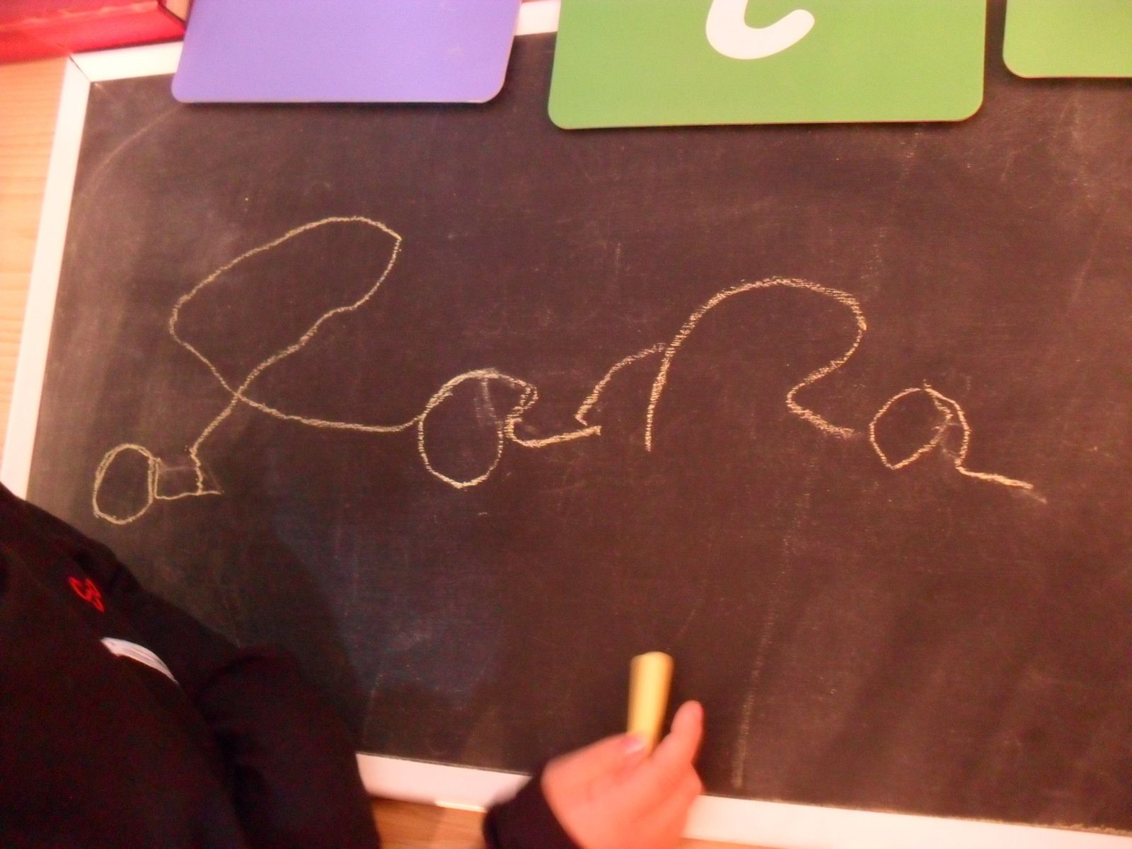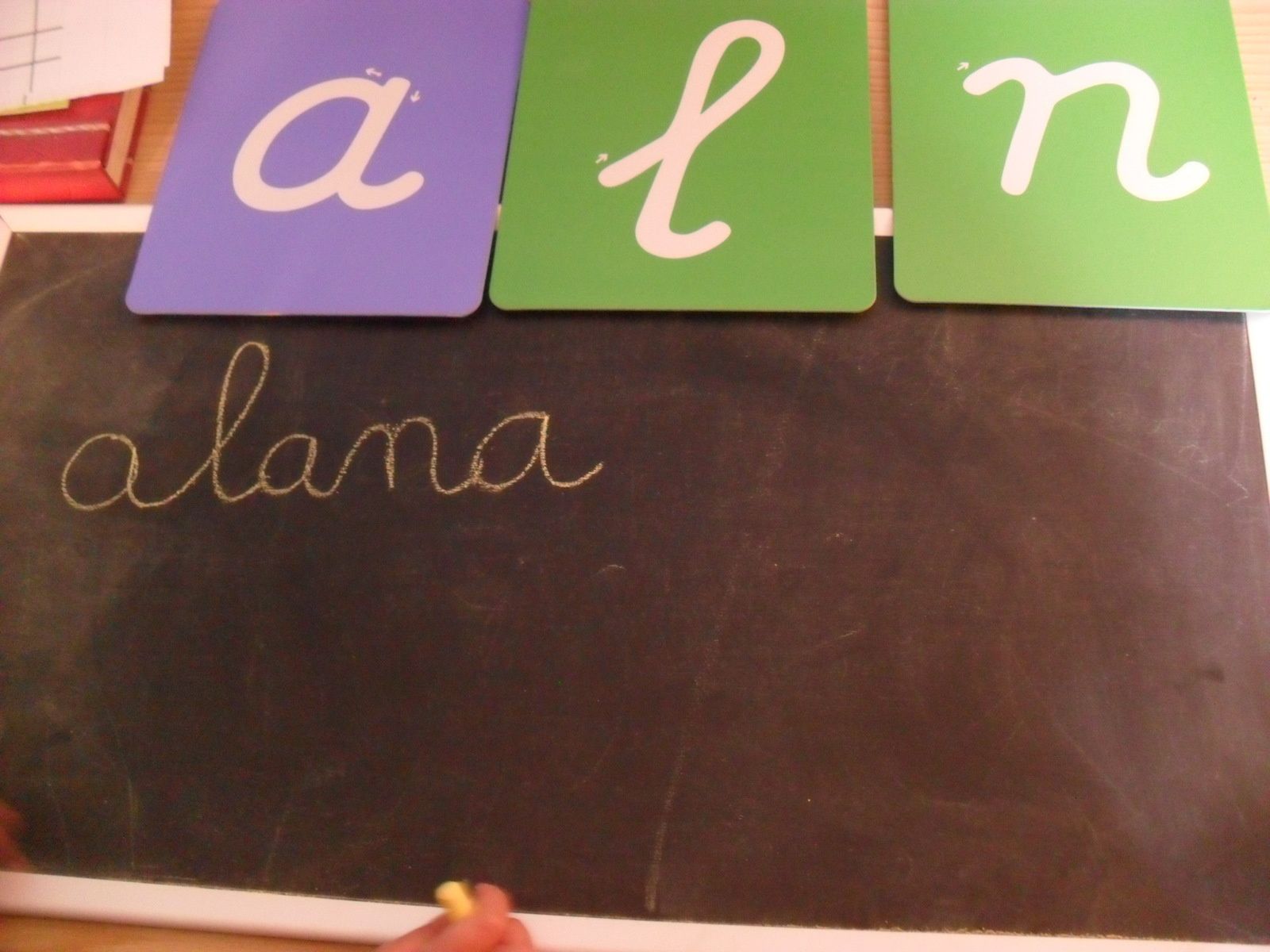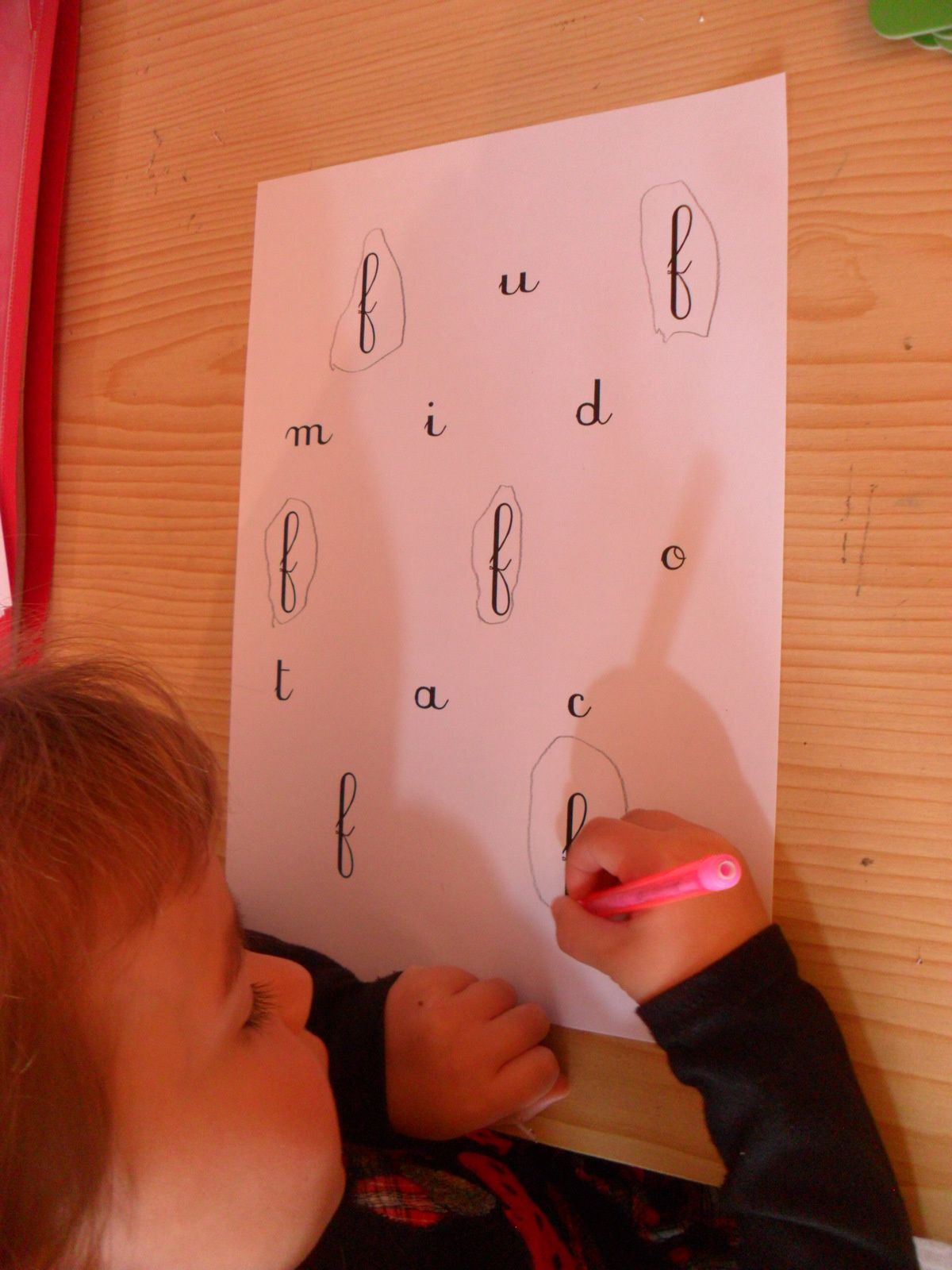 Après la nouvelle leçon en trois temps sur le "f", Alana travaille avec les fiches de Family and Co. C'est devenu un petit rutuel, elle aime beaucoup et ça lui permet de consolider ses nouveaux apprentissages.