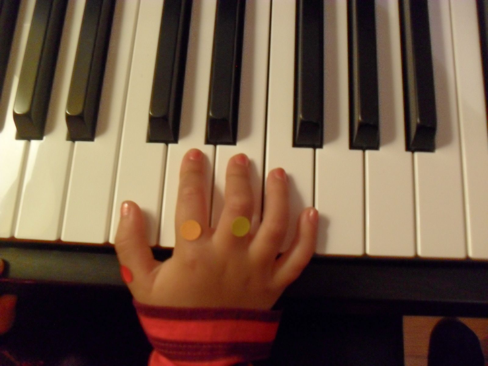 On colle des gommettes de couleurs sur les doigts des enfants et ils peuvent déchiffrer seuls de jolis petits morceaux.
