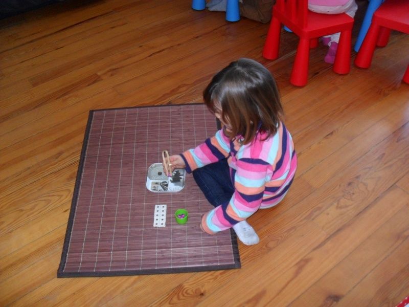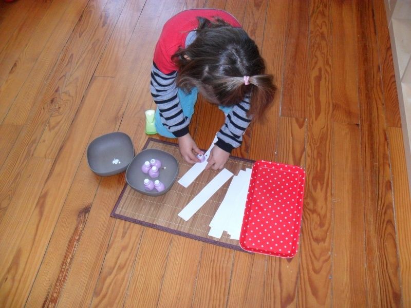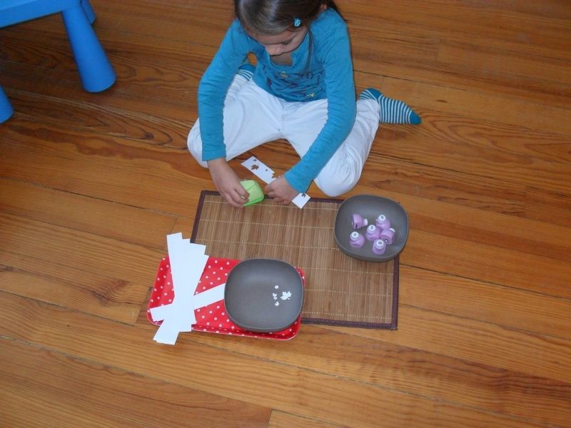 Je suis toujours en retard dans la publication de mes articles, alors voici une petite activité de numération et de motricité venant de Boutique documents Montessori. Alana dénombre les objets de chaque carte et place la pince à linge sur le chiffre correspondant.