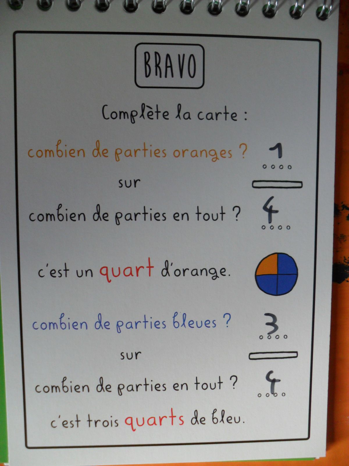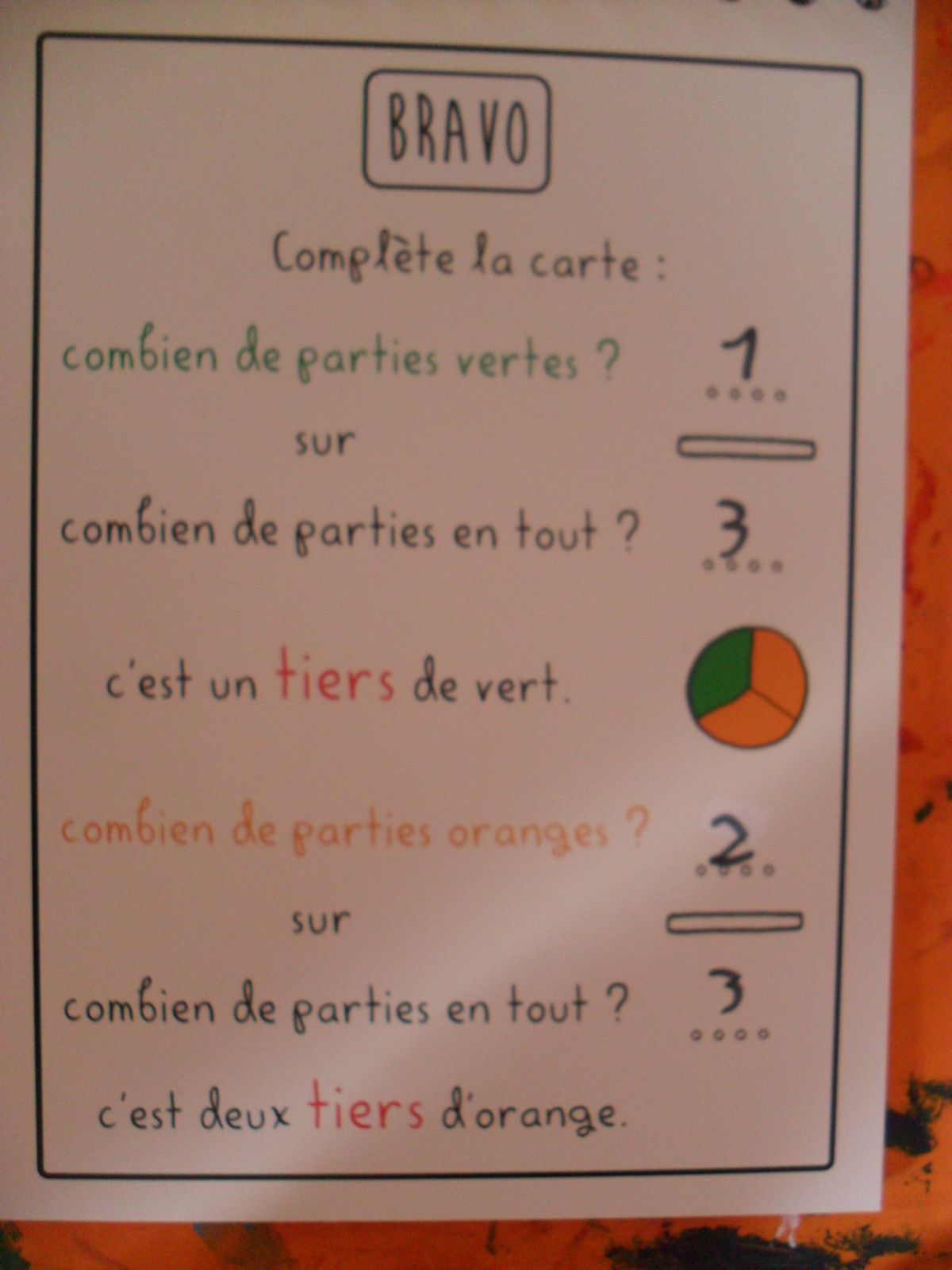 Je lui ai aussi donné le vocabulaire : "numérateur et dénominateur".