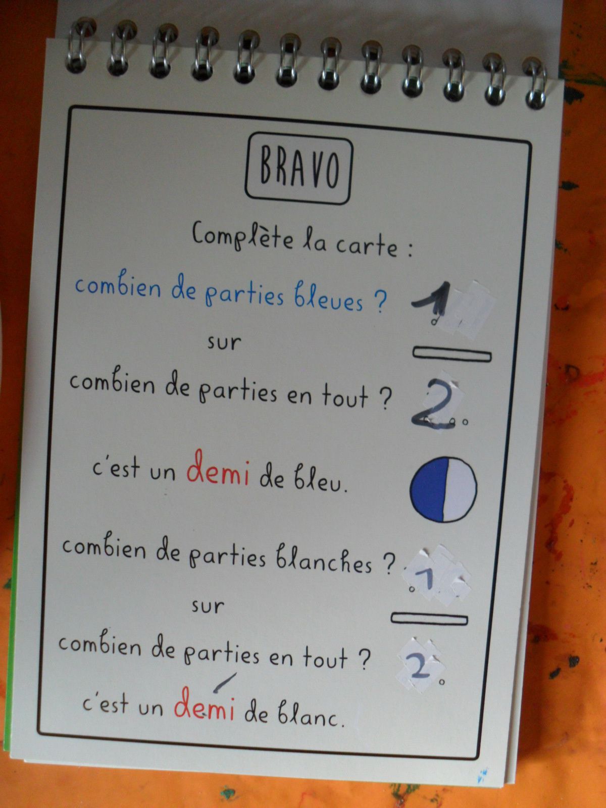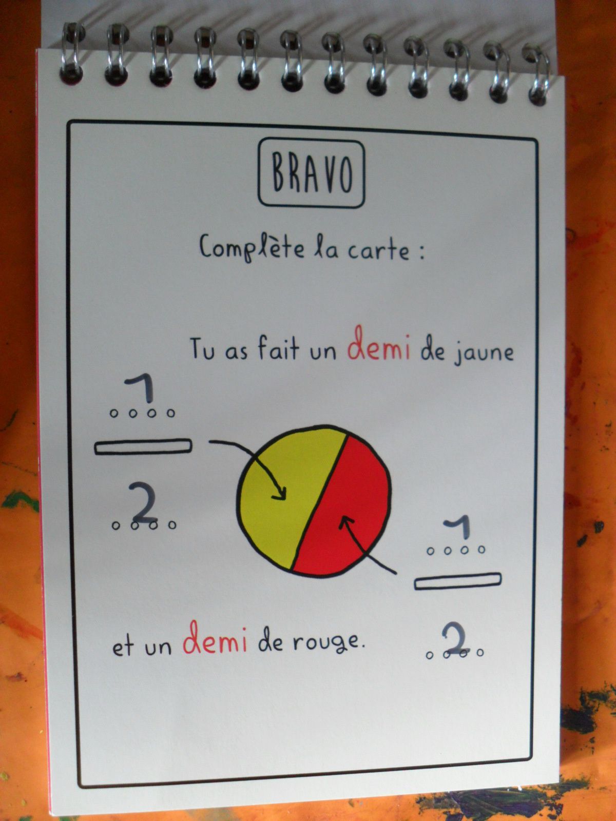 Il a dû ensuite compléter un petit livret pour expliquer les termes mathématiques relatifs aux fractions.