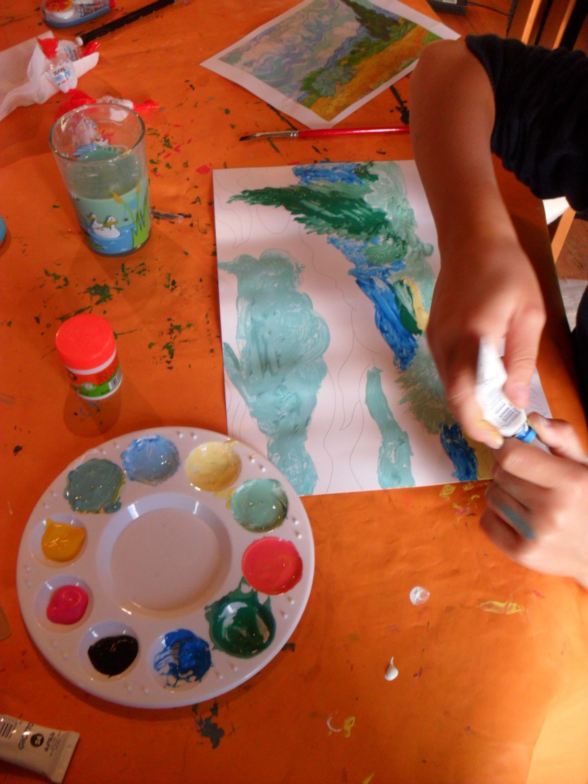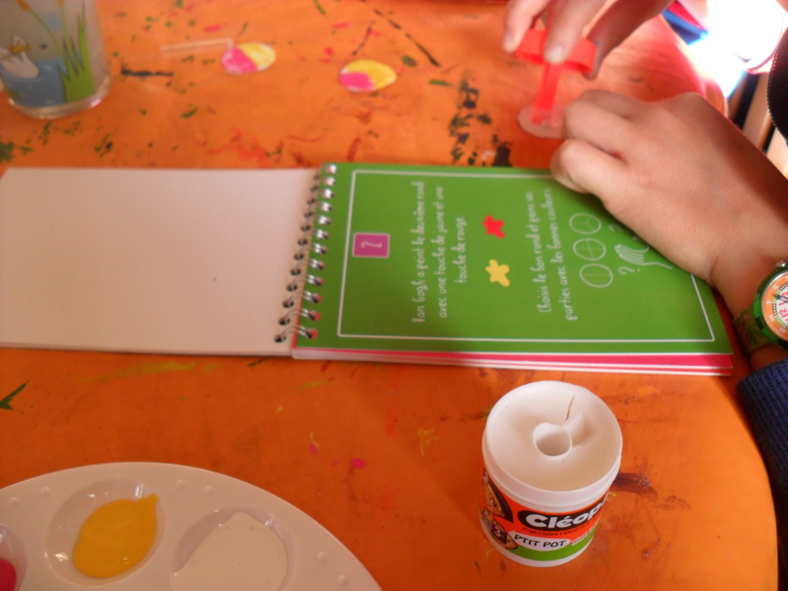 La Box Déclics et des Trucs a permis à Lucas de travailler sur les fractions et de découvrir la peinture de Van Gogh : compléter un tableau de Van Gogh pour découvrir la notion de fractions, voilà une vraie originalité! Lucas devait compléter avec de la peinture des cercles fractionnés pour compléter un tableau de Van Gogh : une moitié de bleu et de blanc, un tiers de rouge, un quart de vert...