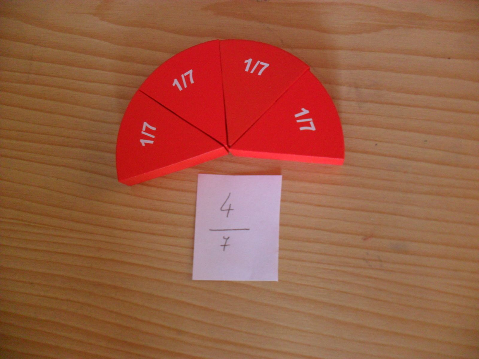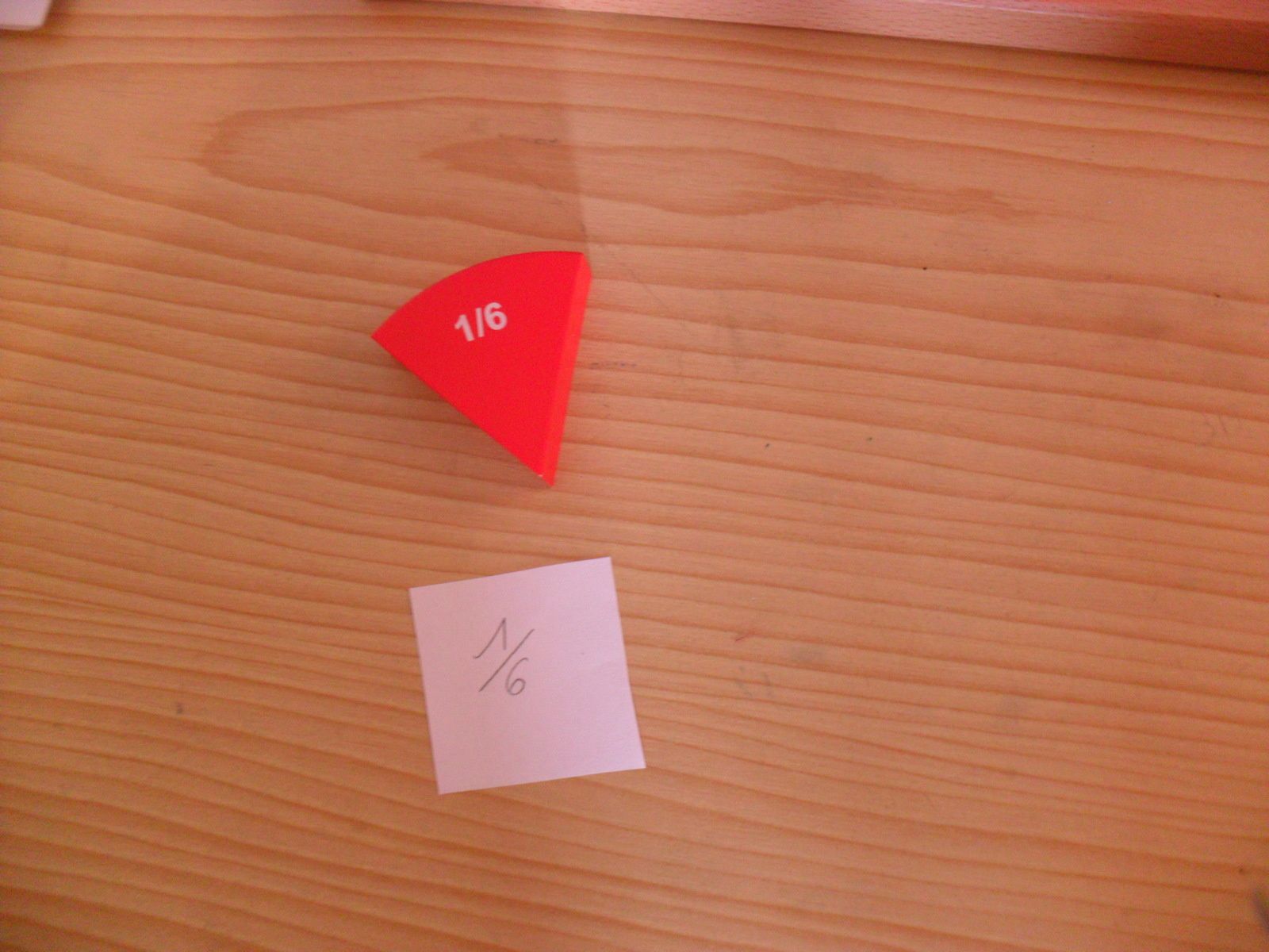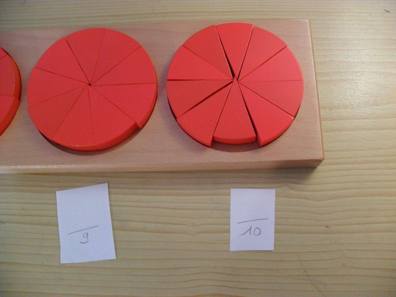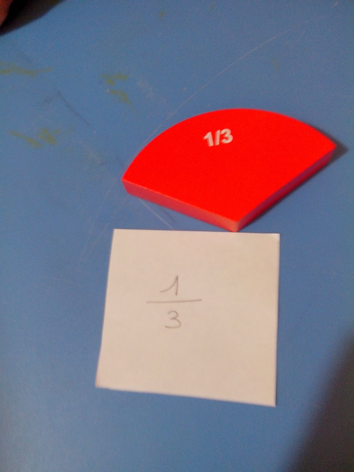 Je lui ai d'abord montré un cercle de fractions entier, en lui disant que c'est 1, comme une perle Montessori.