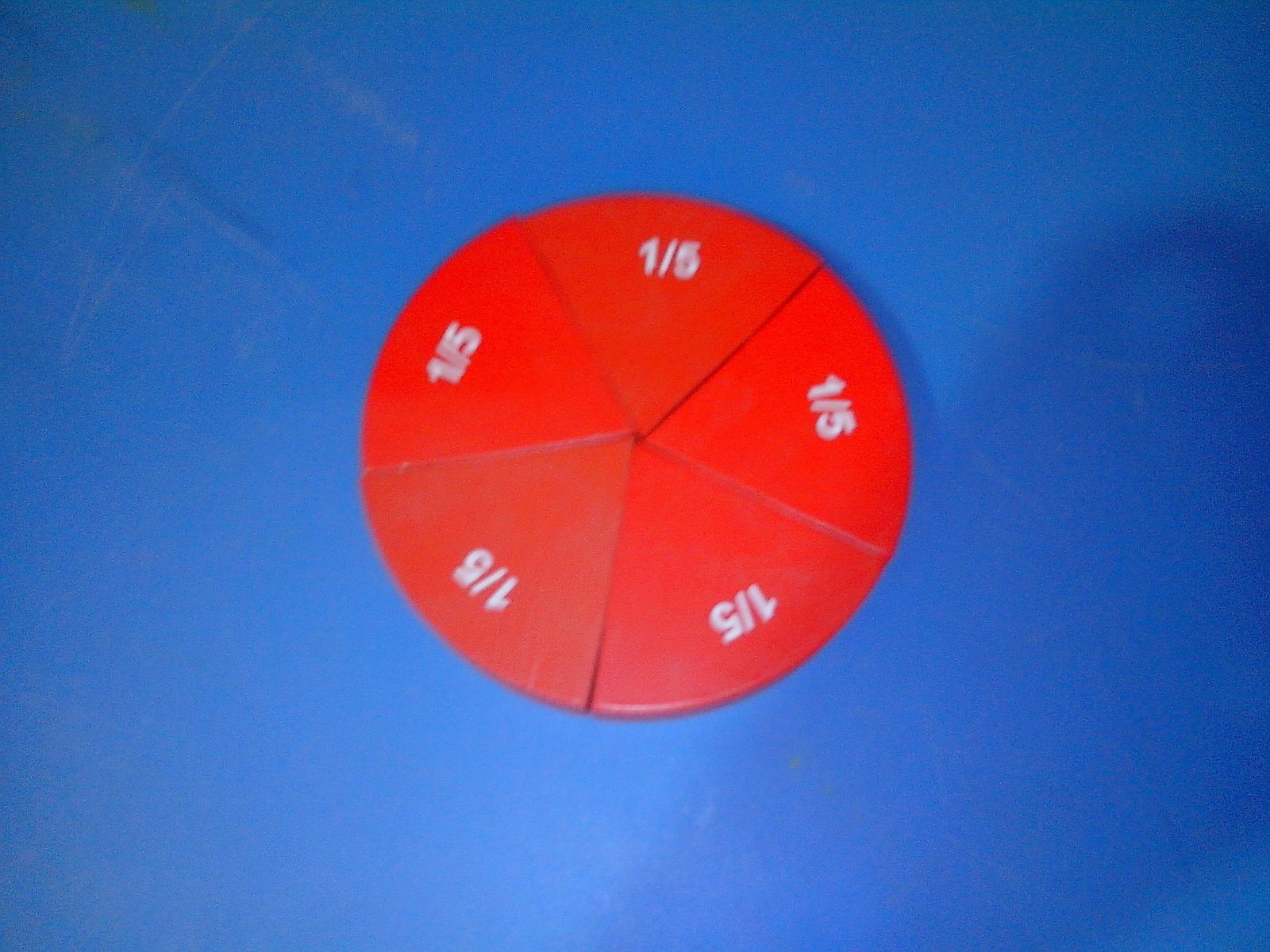 J'ai ensuite sorti les cercles de fractions des demis, tiers, quarts et cinquièmes, pour lui montrer que l'on peut diviser en 2, 3, 4, 5, etc.
