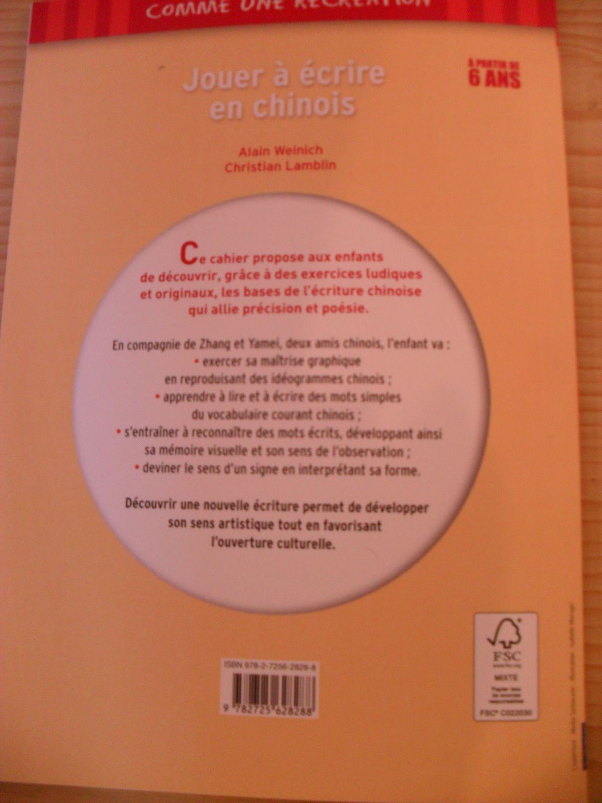 Avec notre thème sur les dragons, Mathieu s'était découvert une passion pour le chinois. Outre les cours du CNED, je lui ai aussi proposé un petit cahier sympa pour qu'il apprenne à écrire des signes chinois.