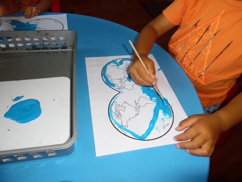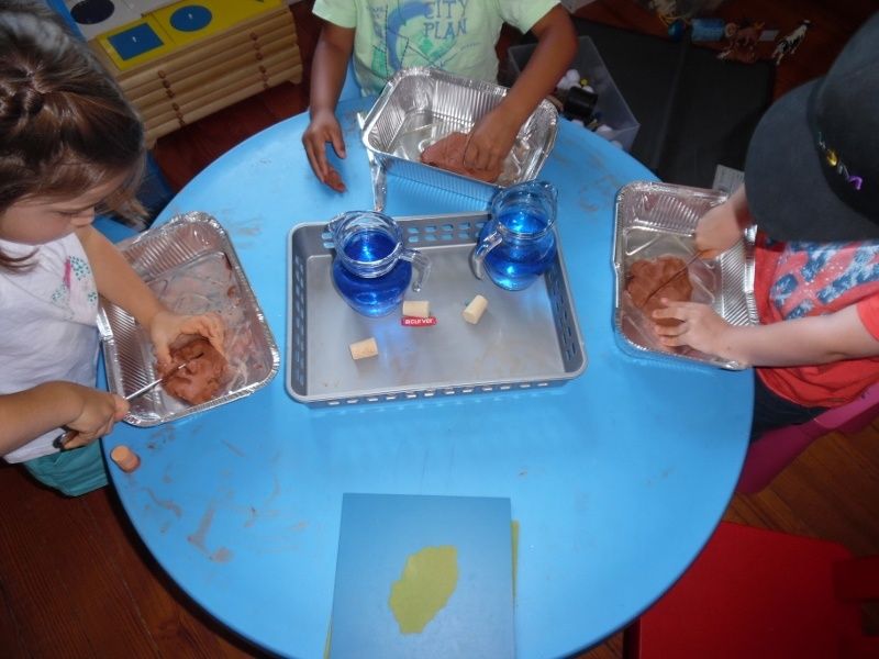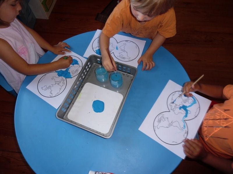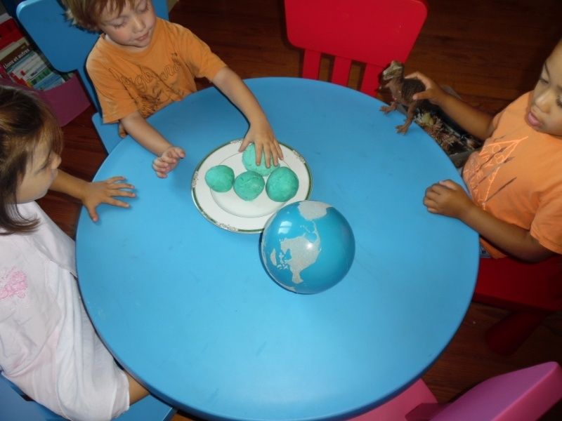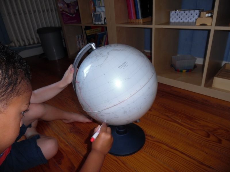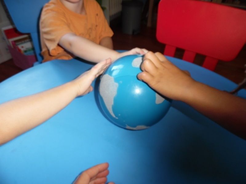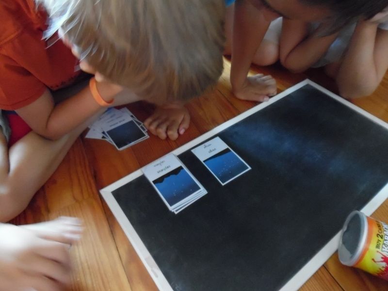 Lundi : Je n'ai pas beaucoup de photos puisque je leur ai fait le premier grand récit Montessori sur la création de l'Univers.