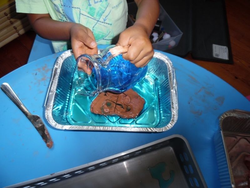 Expérience 3 : les matériaux les plus lourds tombent au centre de la terre, les plus légers remontent à la surface. Création du noyau de la terre.