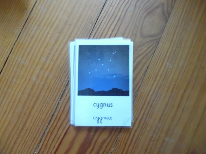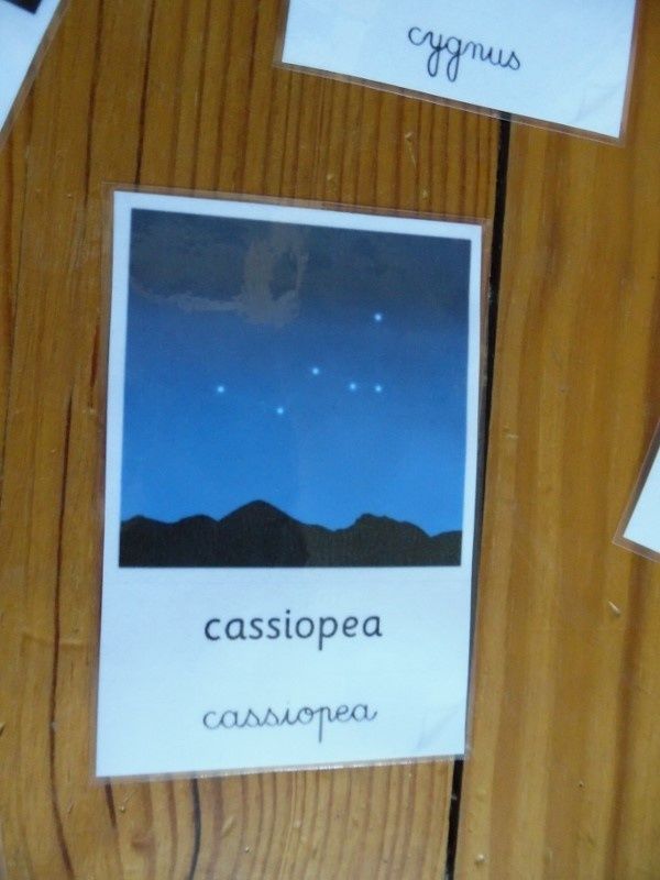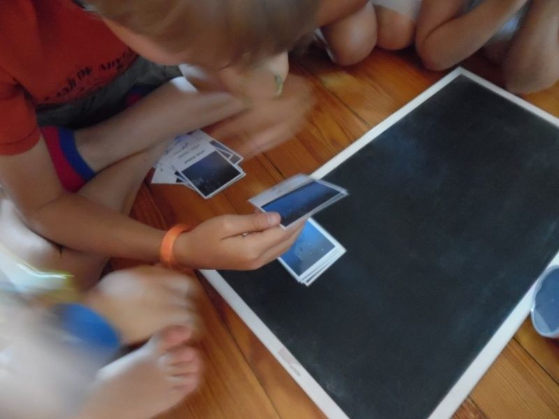 J'ai laissé quelques minutes aux enfants pour qu'ils regardent les cartes de nomenclature des différentes constellations et qu'ils essaient de les retenir. Ensuite, j'ai éteint la lumière et les enfants ont essayé de reconnaître les constellations que je projetais au plafond.