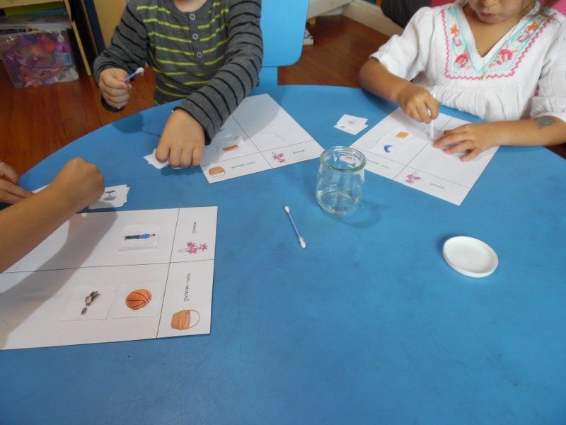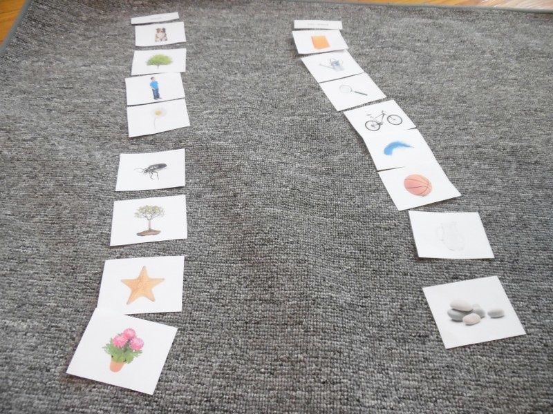 J'ai donné 6 images à classer aux enfants (3 vivants et 3 non-vivants). Ils les ont collées avec de la colle liquide et des coton-tiges. (docs de Boutique Documents Montessori)