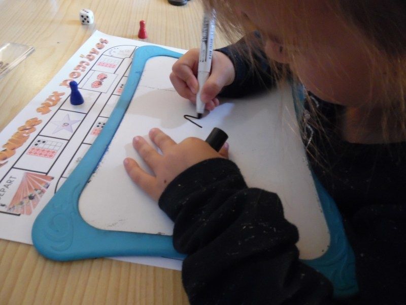 Un petit jeu ensuite : selon les cases, lire les nombres, compter les constellations ou les doigts, écrire les nombres :