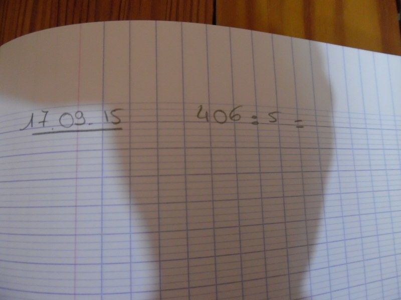 - Après plusieurs opérations, j'ai souligné tous les chiffres pairs des dividendes (avec une petite erreur de ma part sur les photos). Lucas a trouvé la règle tout seul. Je la lui ai écrite sur le tableau, il l'a recopiée sur son cahier de mathématiques.