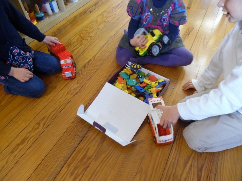 La semaine dernière, j'ai introduit dans la classe des camions, tracteurs et autres jeux roulants. J'ai demandé aux enfants de prendre certains Alphas dans les remorques et de partir en balade avec eux, en les faisant chanter.