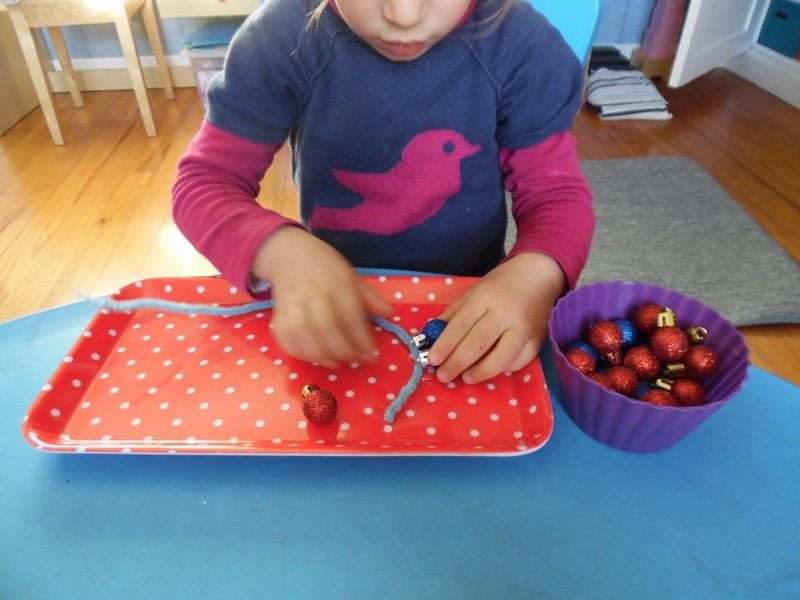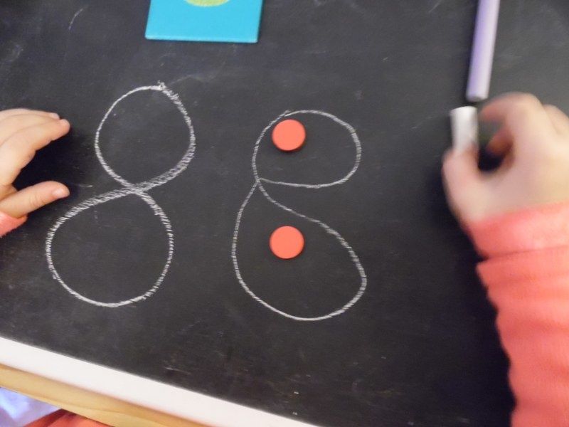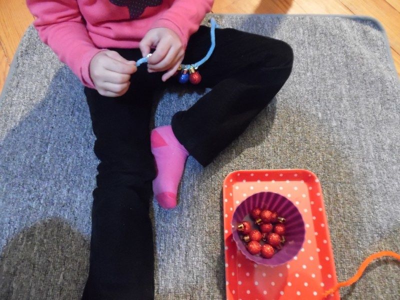 Lucas continue son travail mathématiques avec les petites chaînes de perles.