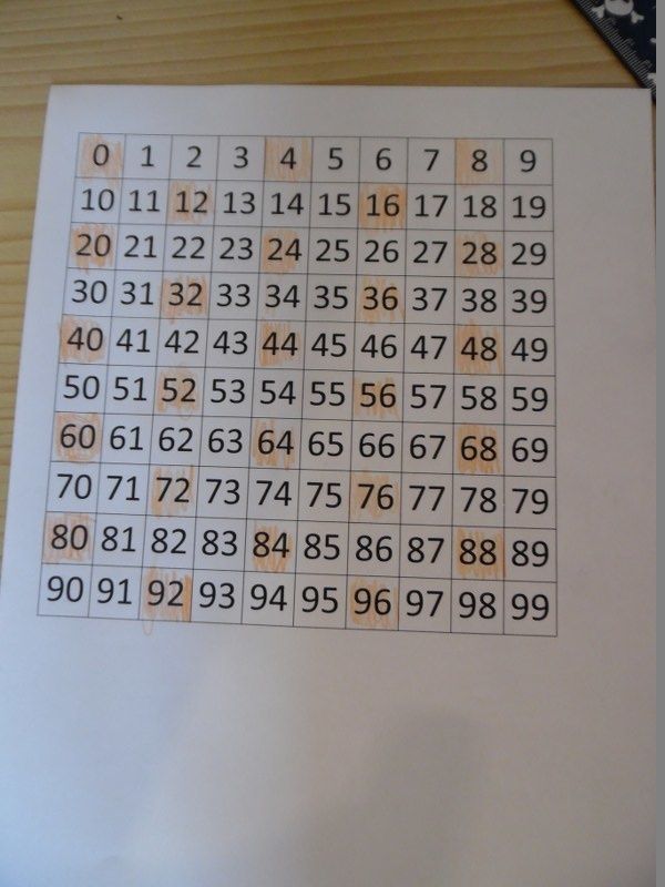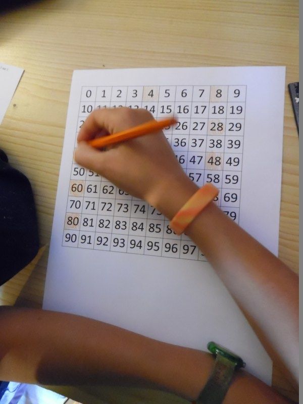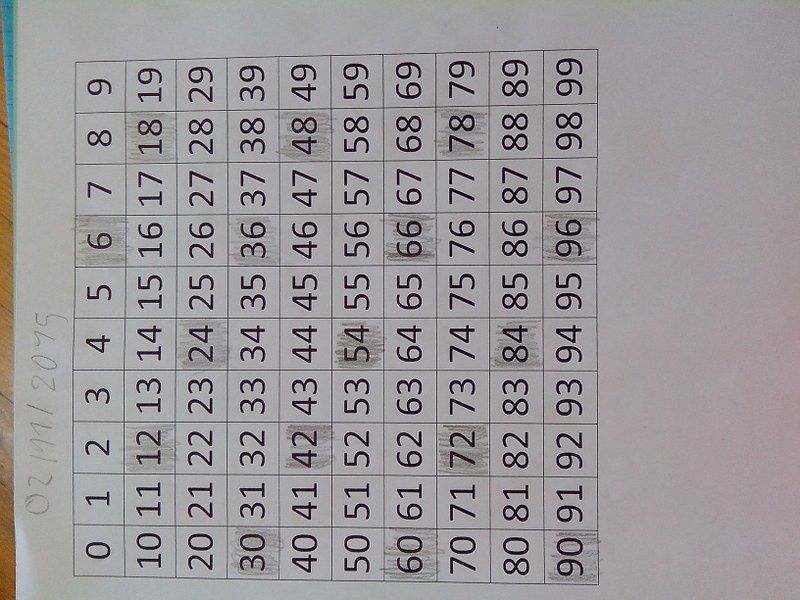 Il faisait ensuite de même avec un tableau de 100 sur feuille. Un excellent moyen de retravailler les multiplications.