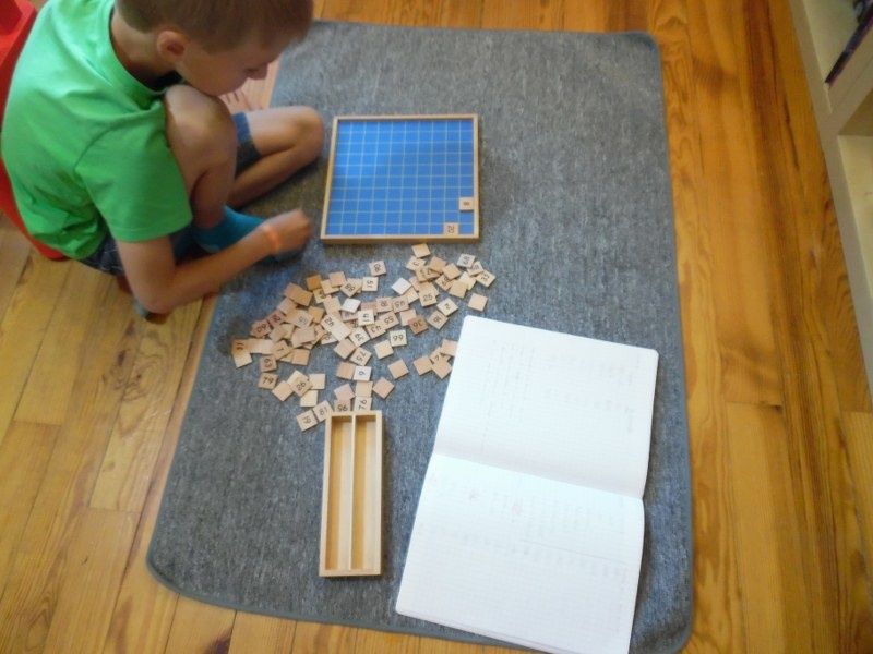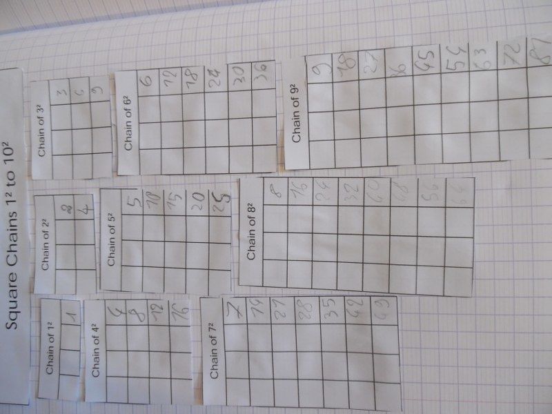 Il a fait la même chose avec chaque petite chaîne de perles, pour voir et comprendre chaque carré des nombres de 1 à 10.