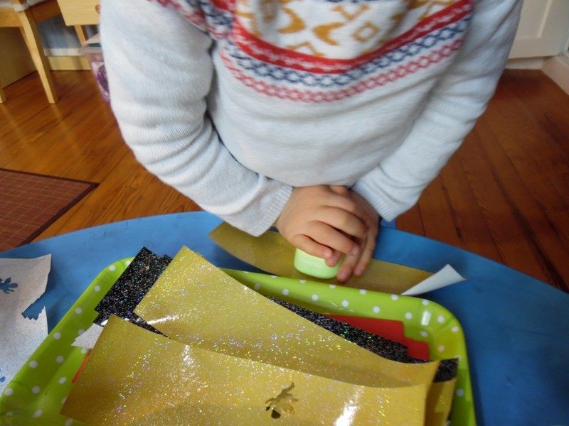 Enfin, ils ont utilisé des perforatrices et des feuilles pailletées autocollantes pour compléter leur tableau.