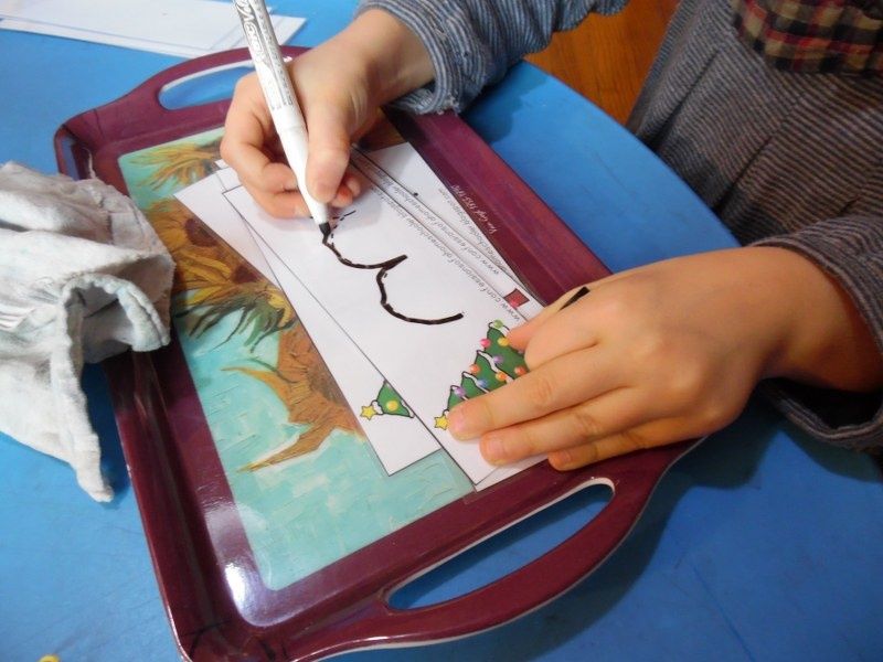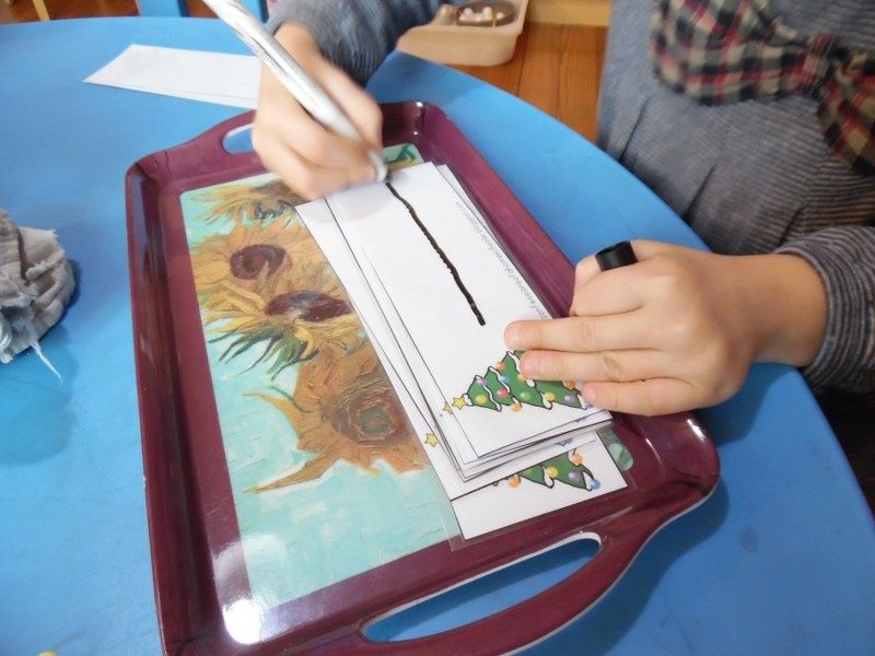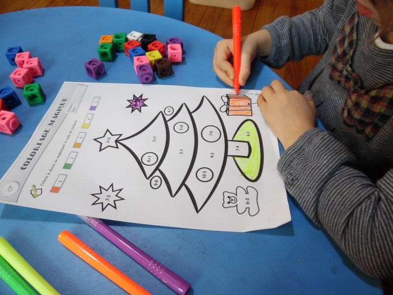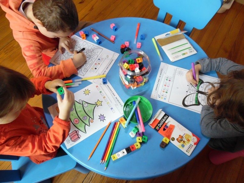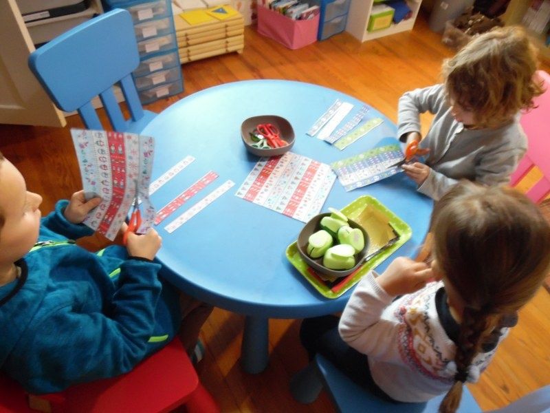 En ce moment, la classe est pleine d'activités de Noël. Motricité fine, lecture, graphisme, mathématiques, art... Les enfants adorent.