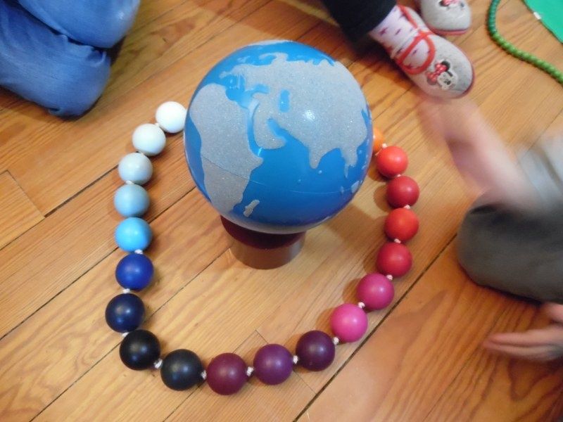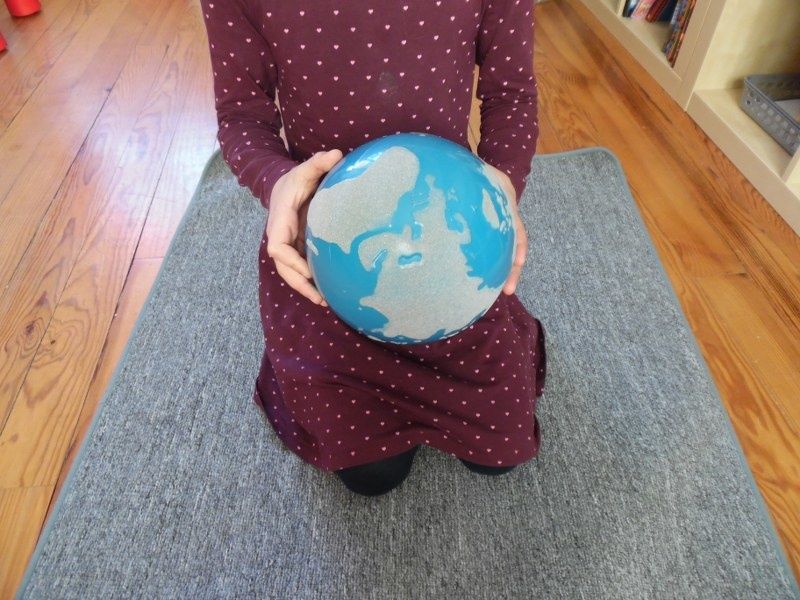 Les enfants ont ensuite voulu tourner autour du soleil avec le globe rugueux dans les mains, comme lors des anniversaires Montessori.