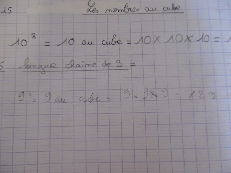 Il plie ensuite sa chaîne pour former un cube et comprend ainsi le cube de chaque nombre :