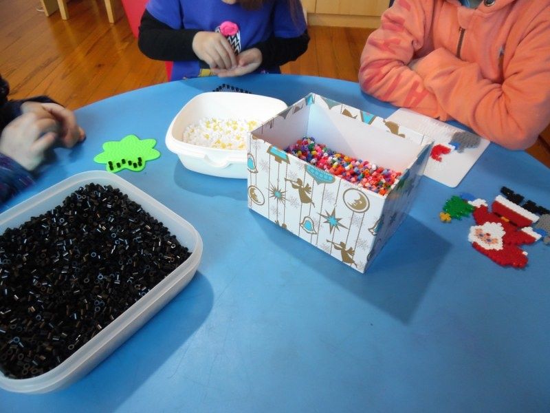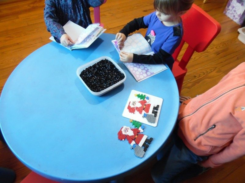 Les perles à repasser, idéales pour travailler la motricité fine, la concentration, et les mathématiques : suivre un modèle pour créer le Père Noël, ou créer un rythme pour l'étoile et le coeur.