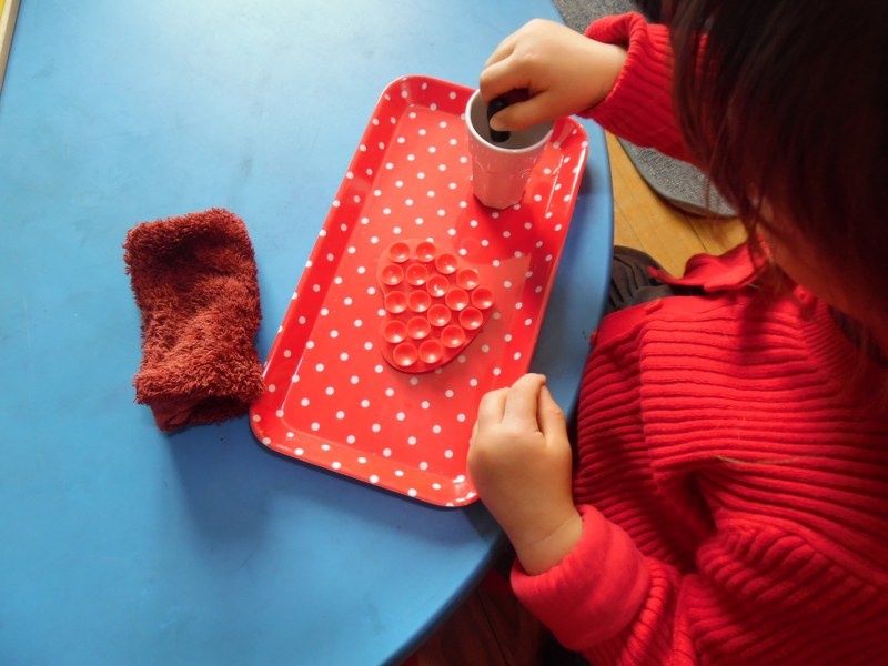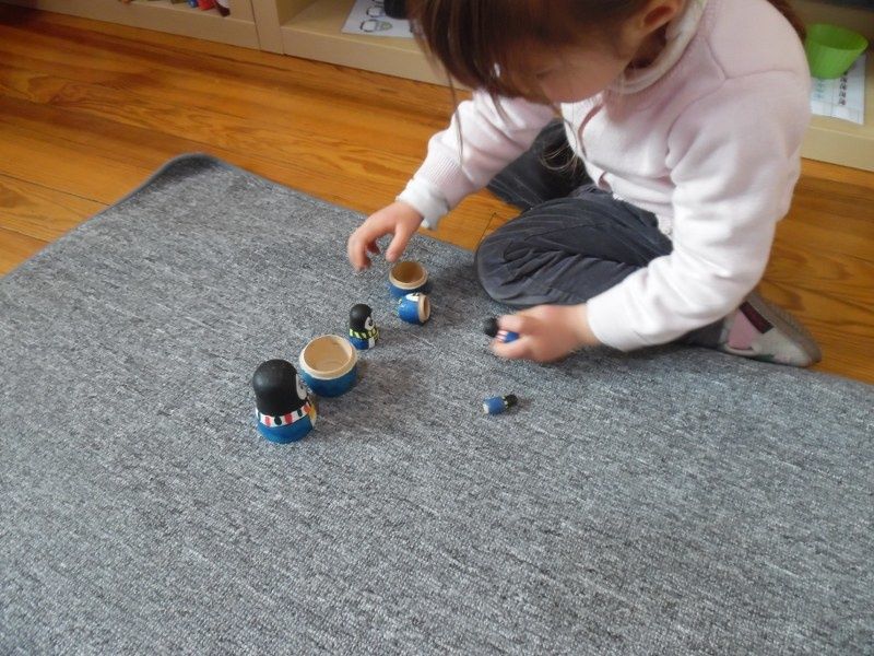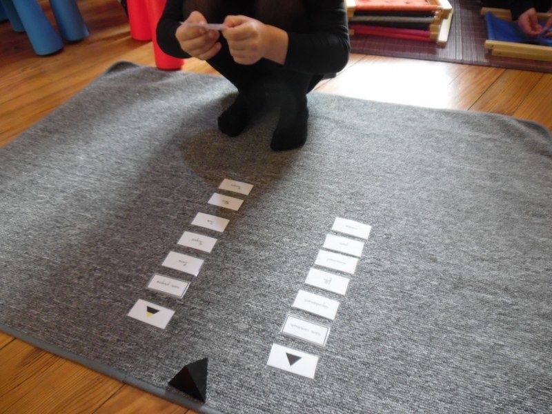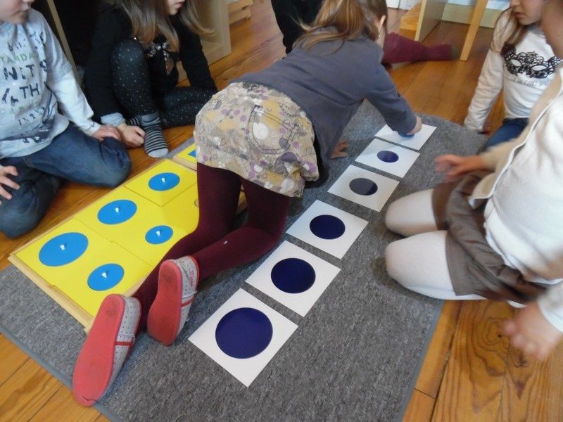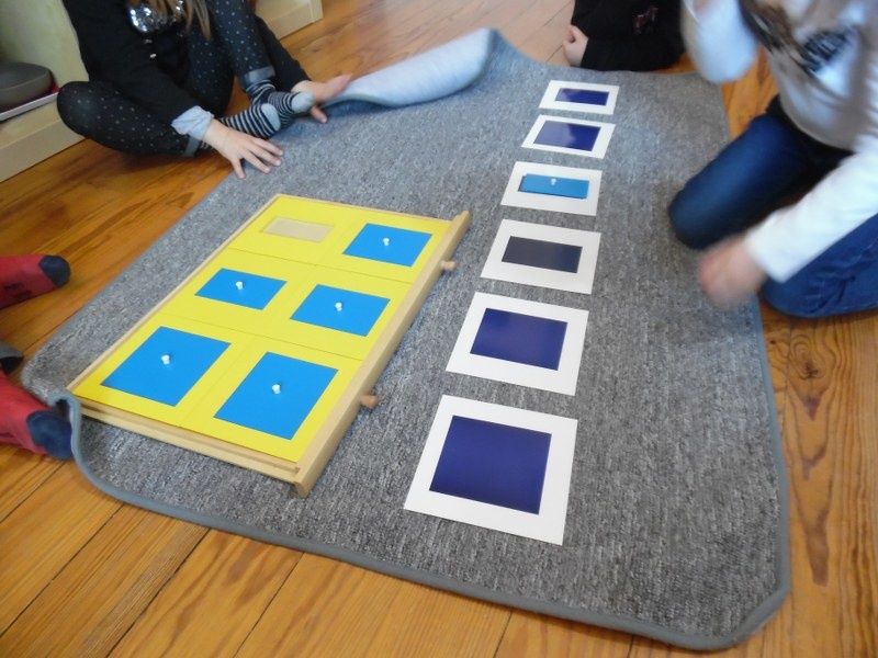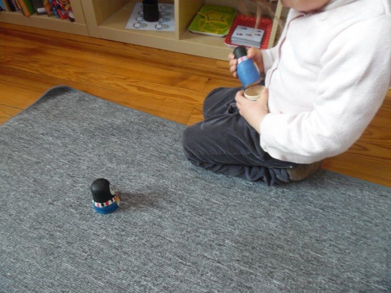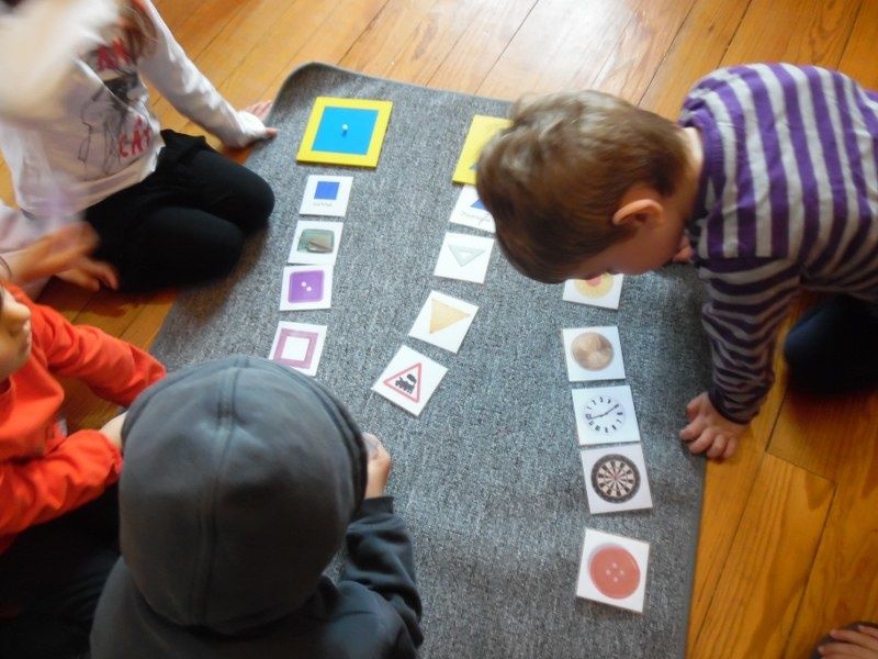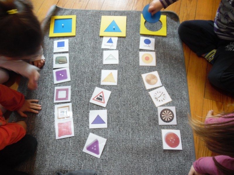 Chacun à leur tour, les enfants ont disposé les formes sur les cartes du cabinet. D'abord sur les formes pleines, puis sur les contours épais et enfin sur les contours fins.