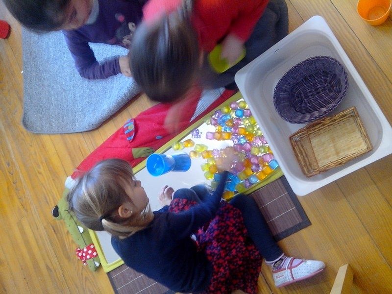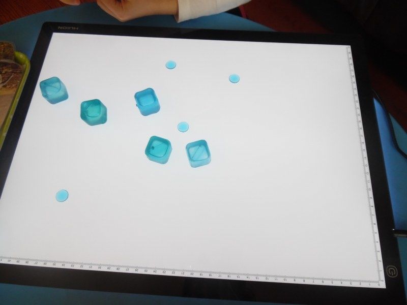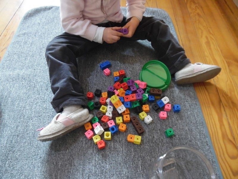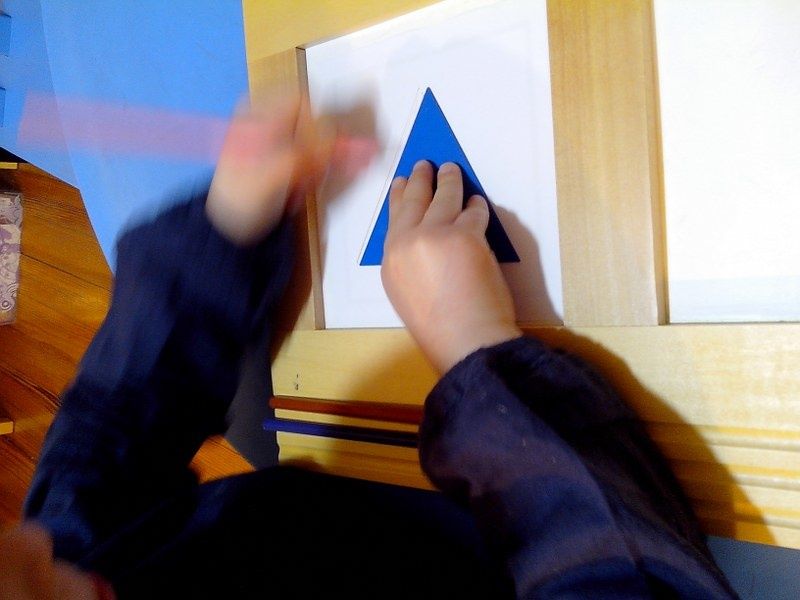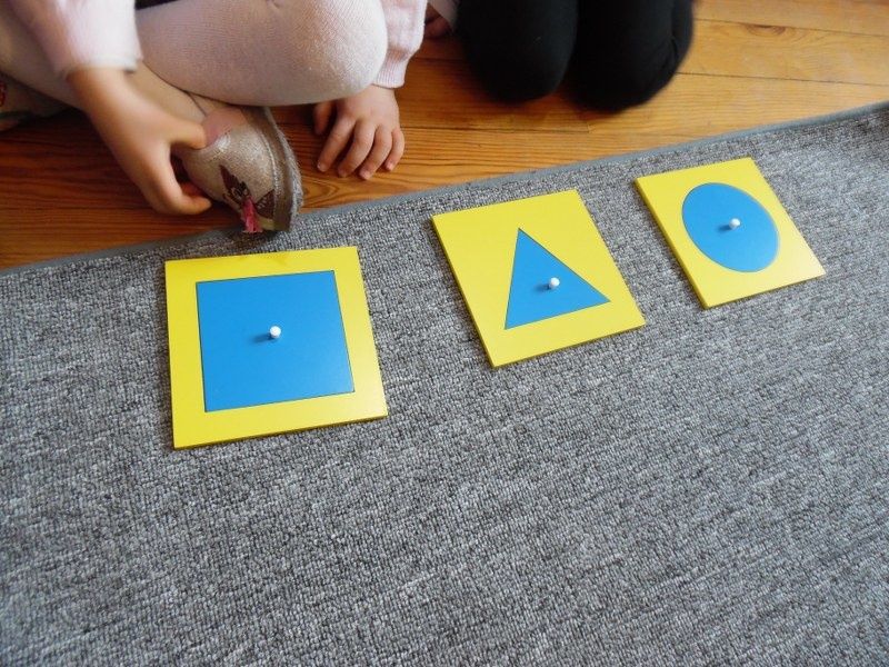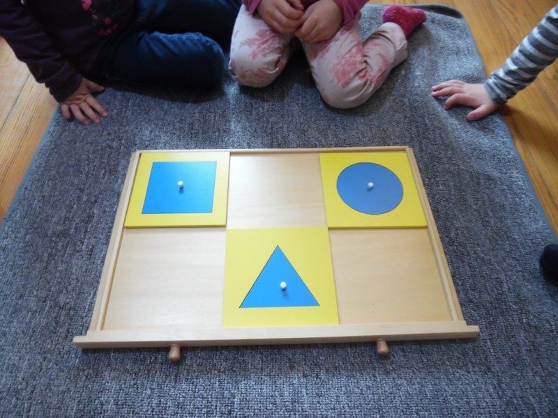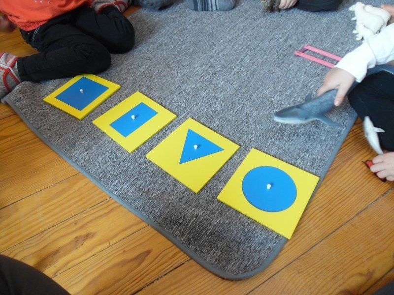 Vendredi : Pour approfondir leur connaissance des formes géométriques, je leur ai proposé un jeu qu'ils ont adoré : chacun à leur tour, ils devaient mettre les mains dans le sac et me donner la forme que je leur demandais.