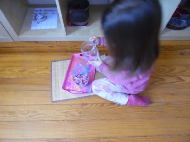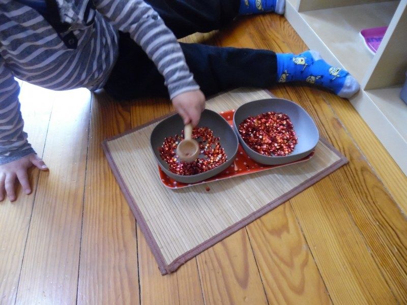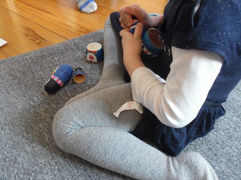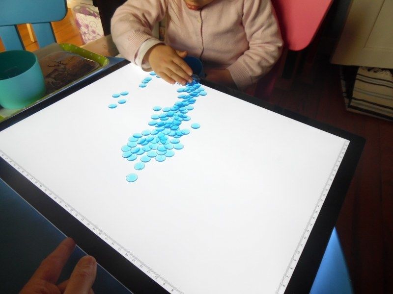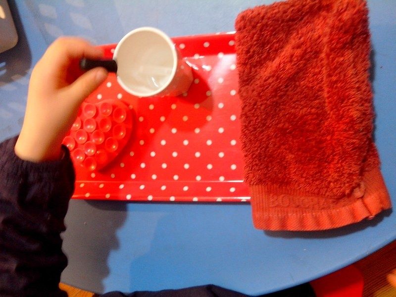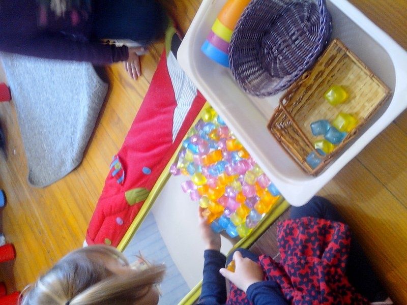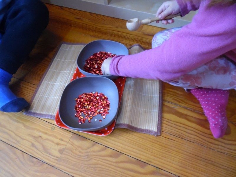 Vendredi : Pour approfondir leur connaissance des formes géométriques, je leur ai proposé un jeu qu'ils ont adoré : chacun à leur tour, ils devaient mettre les mains dans le sac et me donner la forme que je leur demandais.