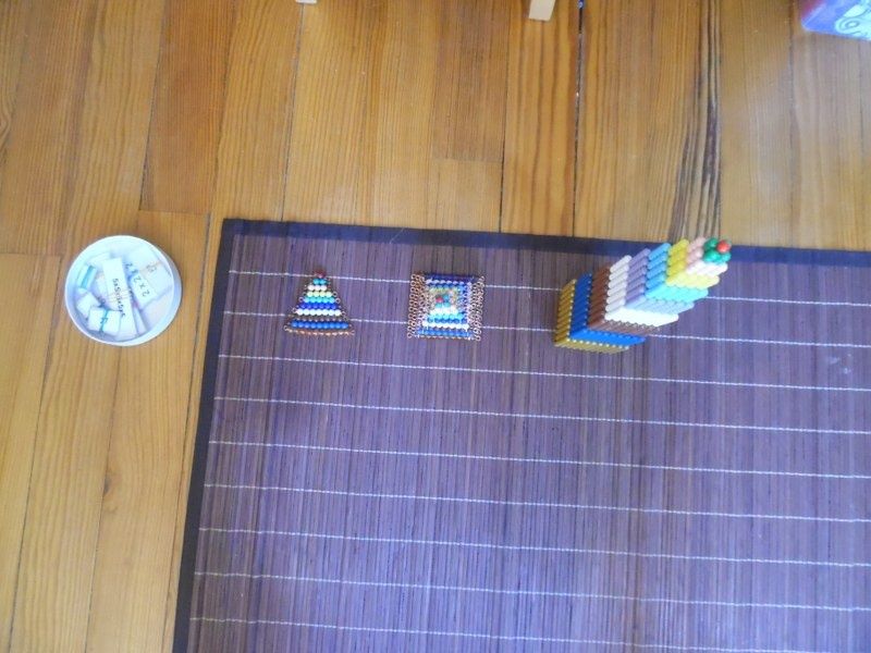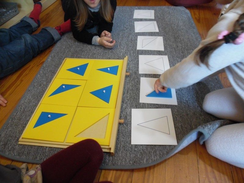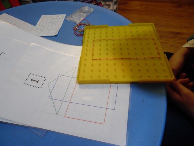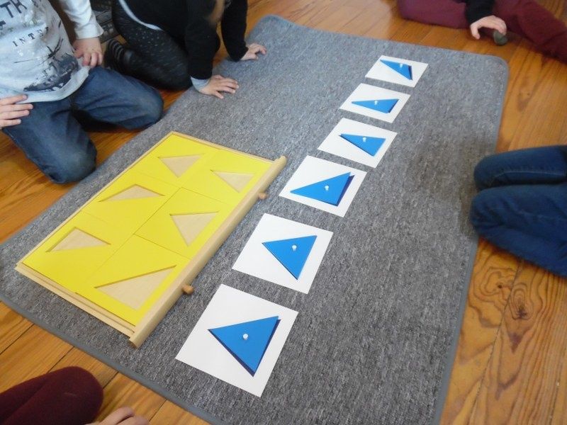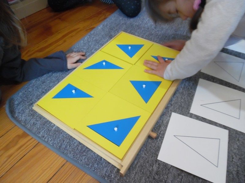 Cette activité a été l'occasion de revoir la notion de "côtés" vue les jours précédents : les triangles ont 3 côtés, le carré en a 4, c'est un quadrilatère.