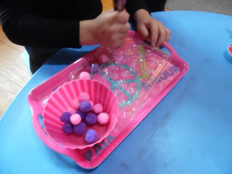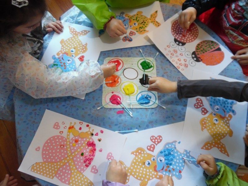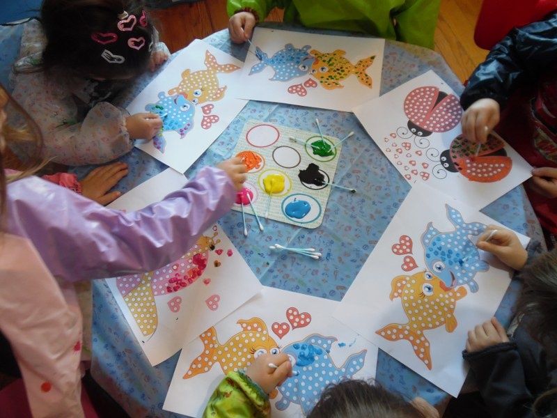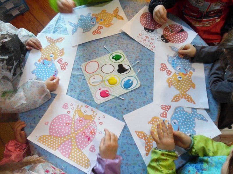 L'activité artistique du jour : peinture au coton-tige.