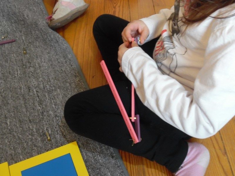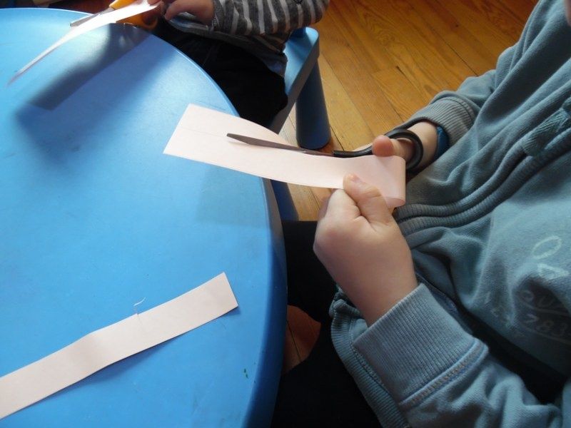 J'ai ensuite présenté une nouvelle forme : le rectangle. Il a quatre côtés comme le carré, mais ses côtés ne sont pas tous de la même longueur. Pour mieux le comprendre, les enfants ont fabriqué leur propre rectangle.