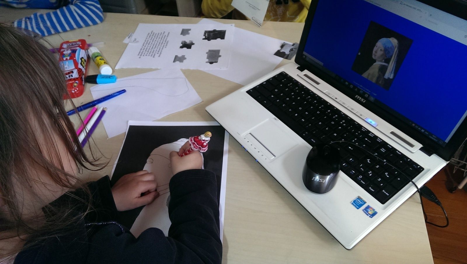 Elle continue tranquillement l'apprentissage de l'heure.