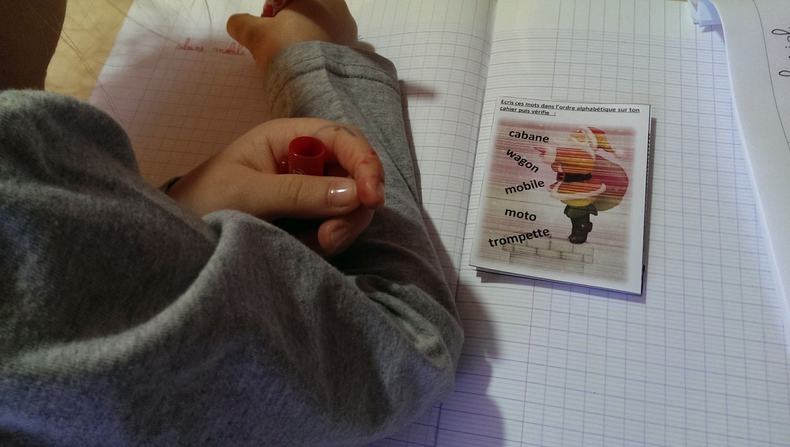 Un travail sur l'ordre alphabétique pour Alana, sur le super site Récréatisse. Comme pour les opérations, Alana en fait un par jour en autonomie. Elle se corrige seule.
