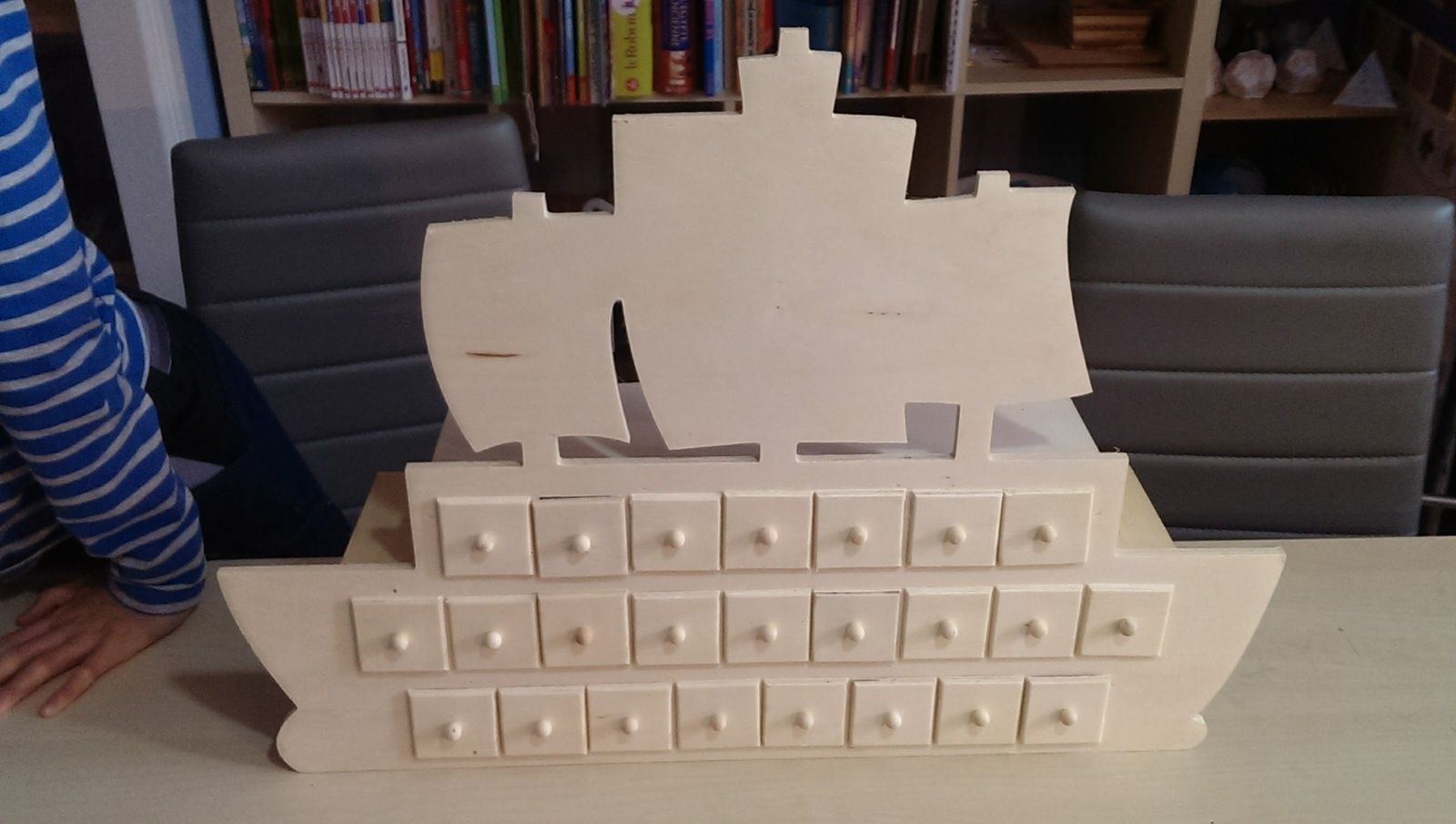 Calendrier de l´Avent 'bateau', avec tiroirs, 60 x 12 x 44,5 cm