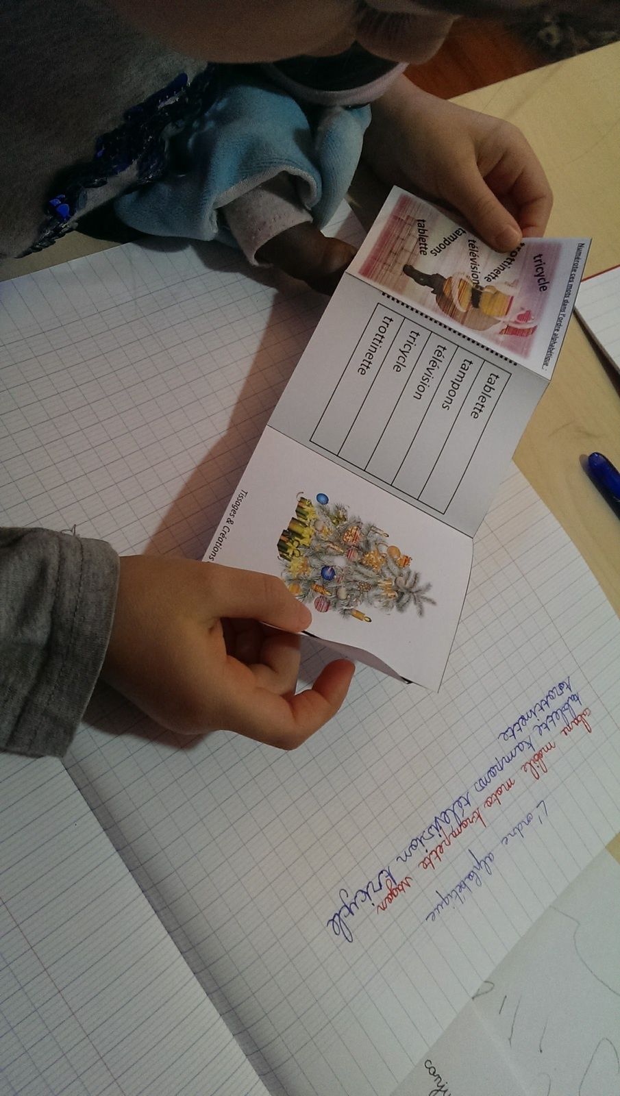 Avec Perle, nous avons lu un imagier de Noël : je cachais les images, elle lisait les mots puis je lui montrais l'image.