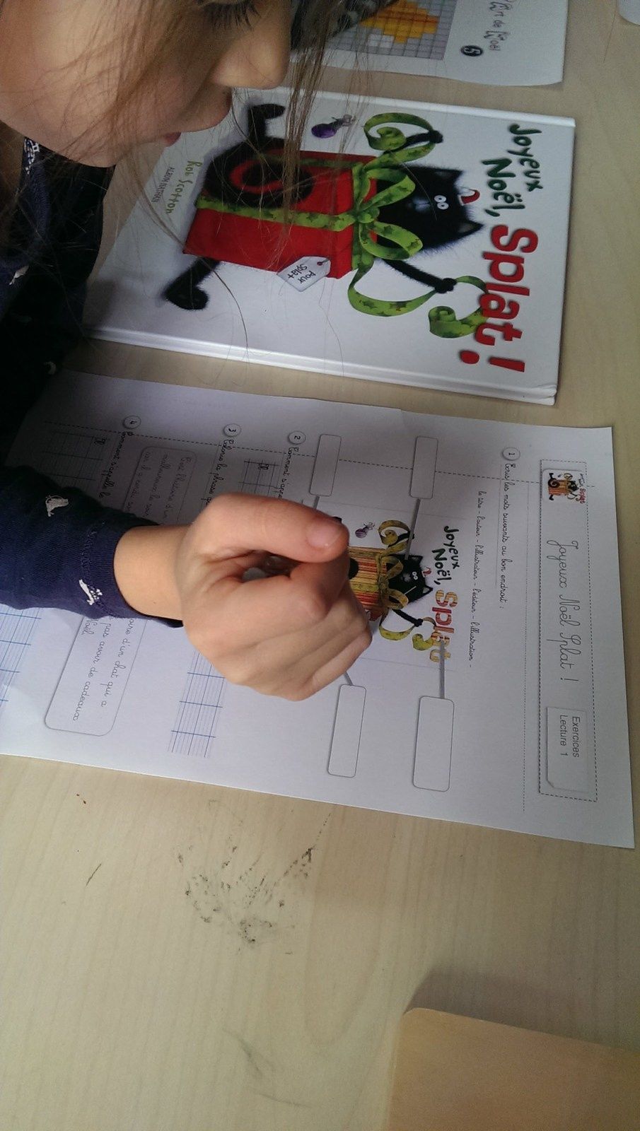 Nous avons relu l'album Joyeux Noël Splat, et Alana commence un travail de compréhension venant de Bout de Gomme.