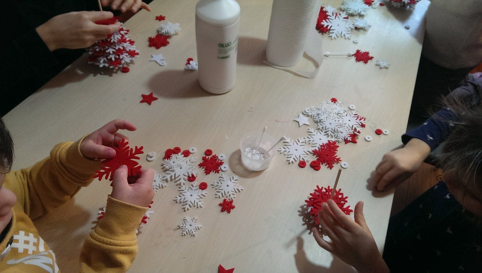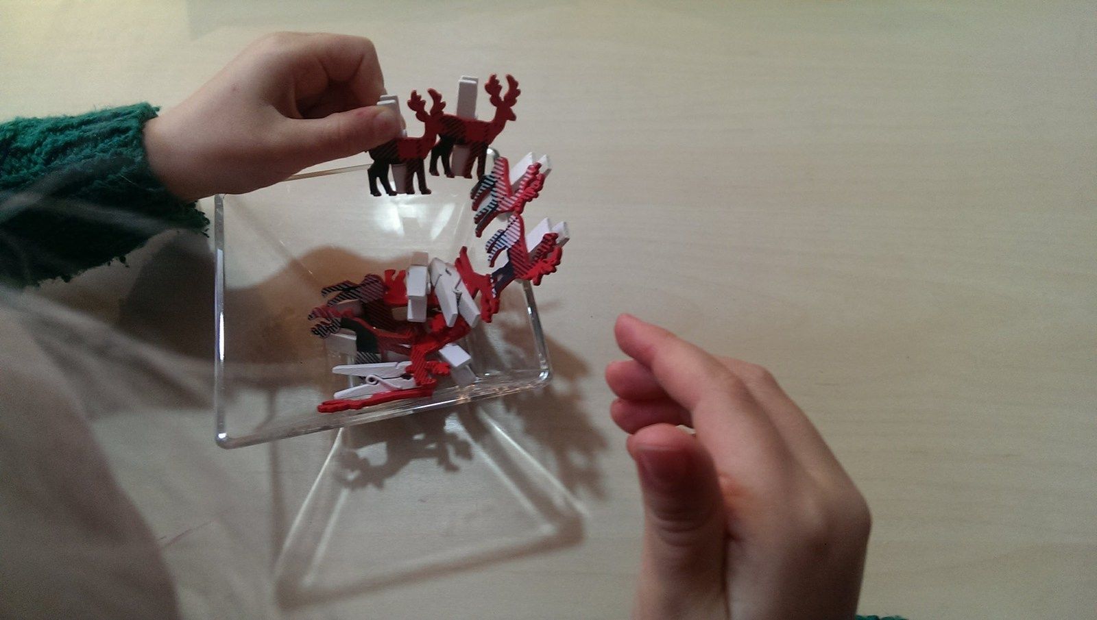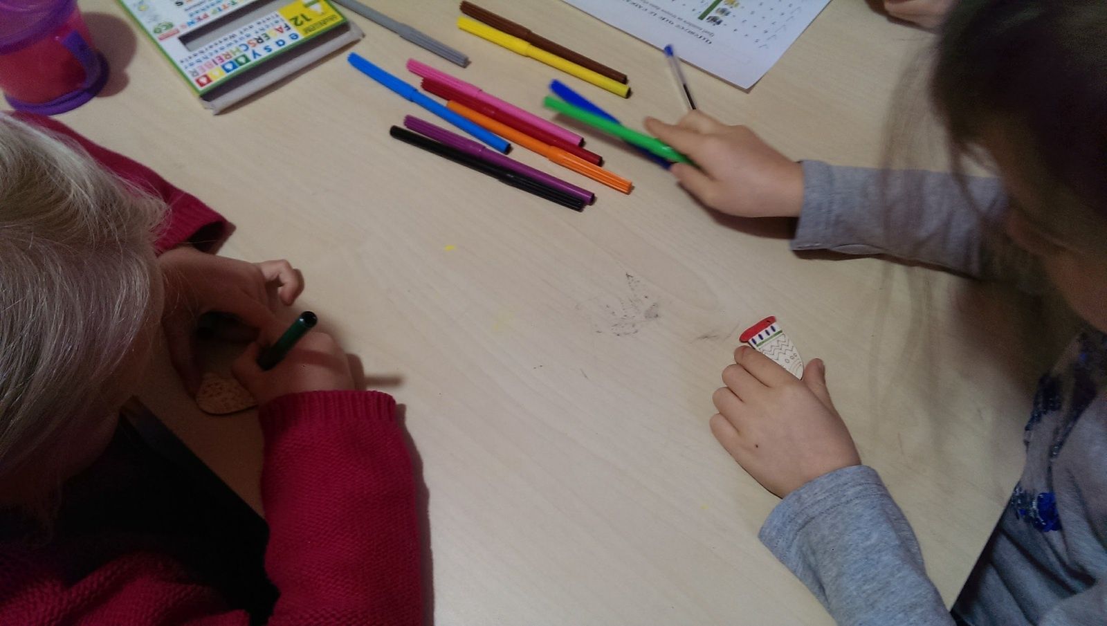 Les enfants ont trouvé dans leur calendrier de l'Avent des petites chaussettes en bois à colorier et à placer sur le sapin.