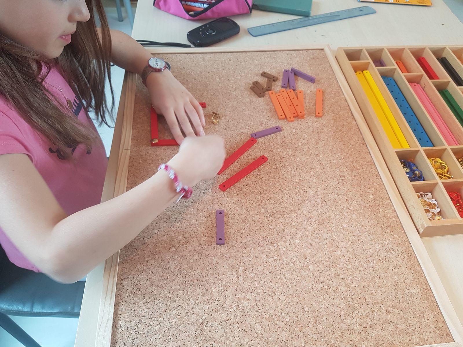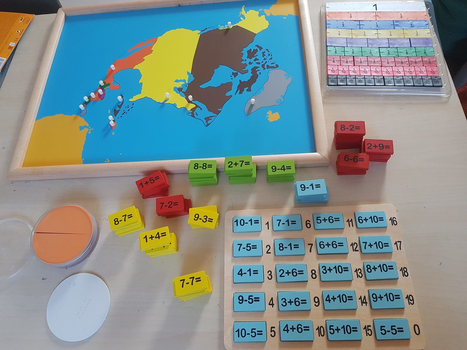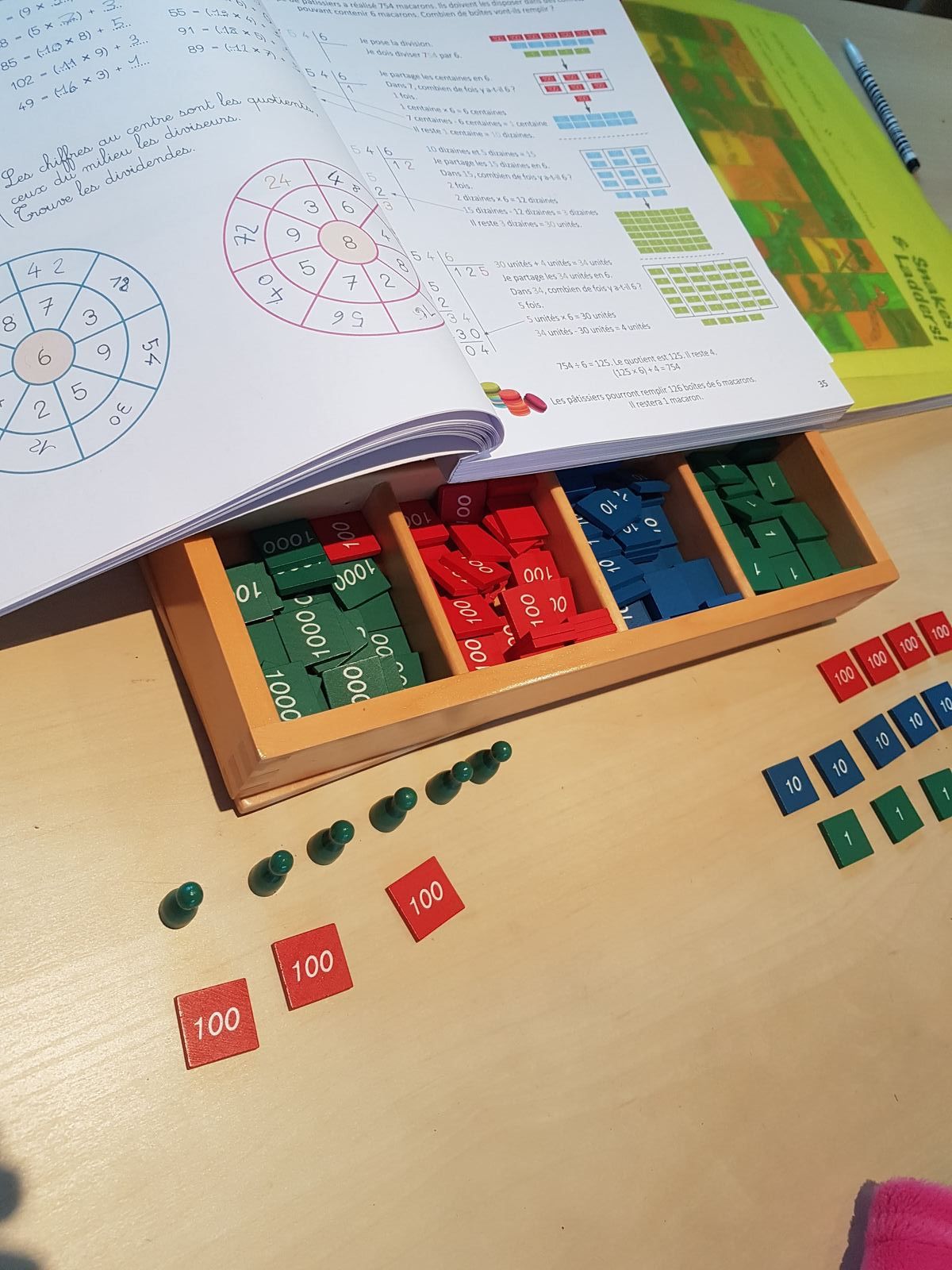J'ai acheté un nouveau matériel (qui n'est pas un matériel typiquement Montessori, même s'il est vendu comme tel), pour qu'Alana continue à travailler le calcul mental, parce que ce n'est pas son fort. Elle a pourtant suivi toutes les étapes de mémorisation de l'addition Montessori, mais elle continue à compter sur ses doigts.
