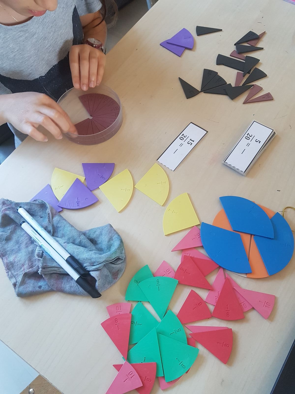 J'ai également acheté un nouveau matériel de fractions pour que Jonah et Alana puissent continuer leur formation fractions, commencée il y a quelques semaines avec "apprends-moi autrement". J'avais déjà les cercles fractionnées Montessori de 1 à 10, mais je n'avais pas ceux de 11 à 20. J'ai hésité à acheter le même modèle de cercles fractionnés que j'avais déjà, mais ceux utilisés dans la formation d'Apprends-moi autrement sont plus épais et plus faciles à manipuler. Les enfants préfèrent.