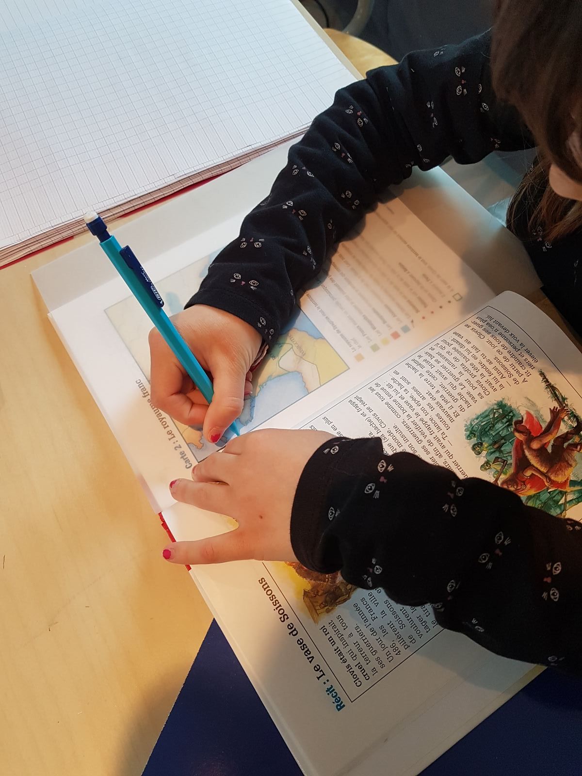 Pendant le confinement, la professeur de formation musicale d'Alana continue à proposer des activités chaque semaine à ses élèves. Elle nous envoie par mail un petit dossier avec des exercices et des audios qui nous permettent de les faire.