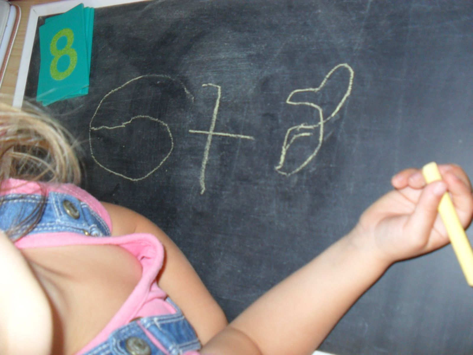 Une des passions d'Alana en ce moment, c'est l'écriture des chiffres. Elle fait glisser ses doigts sur les chiffres rugueux, écrit, efface et recommence si elle n'est pas satisfaite du résultat, ce qui est très souvent le cas car elle est très critique envers elle-même.